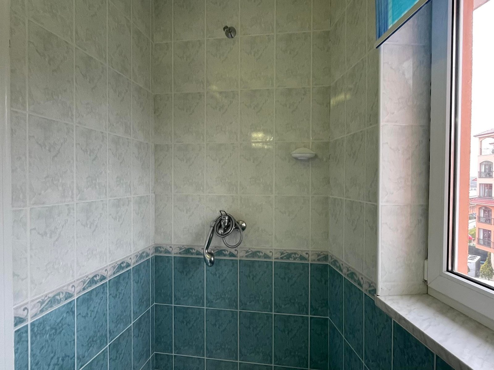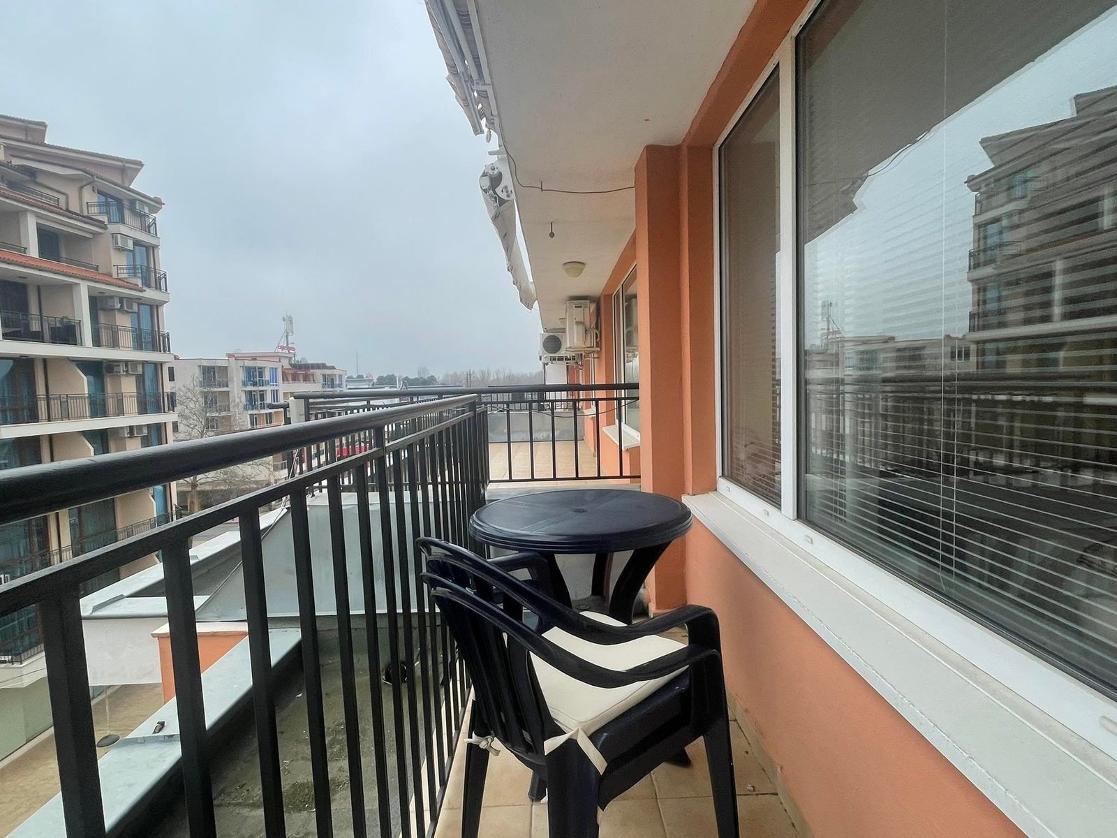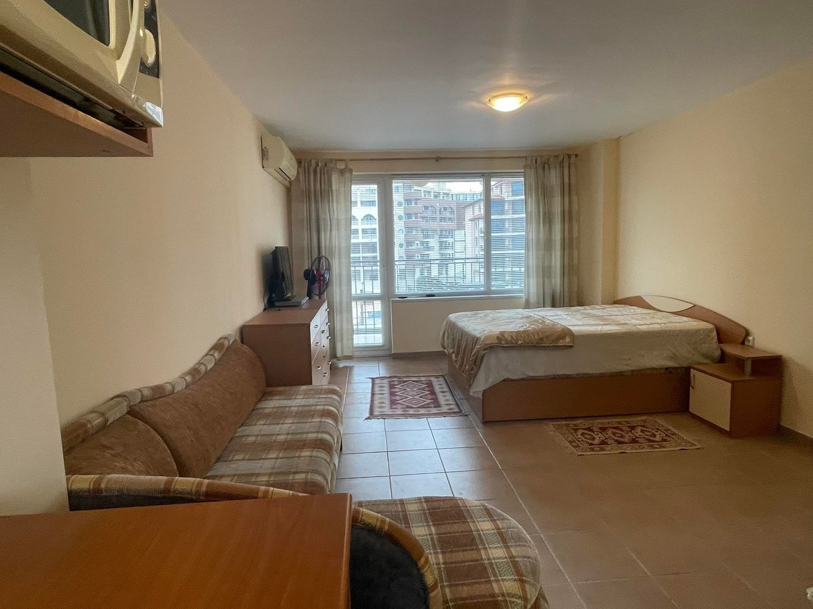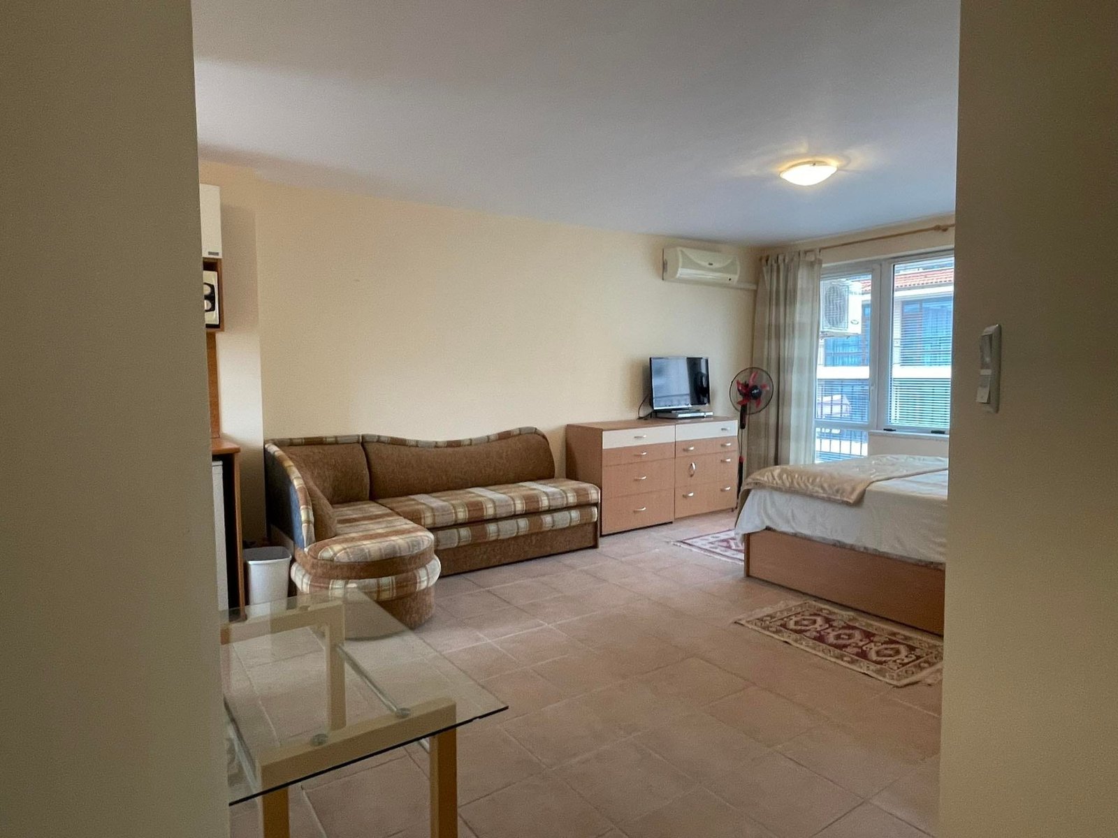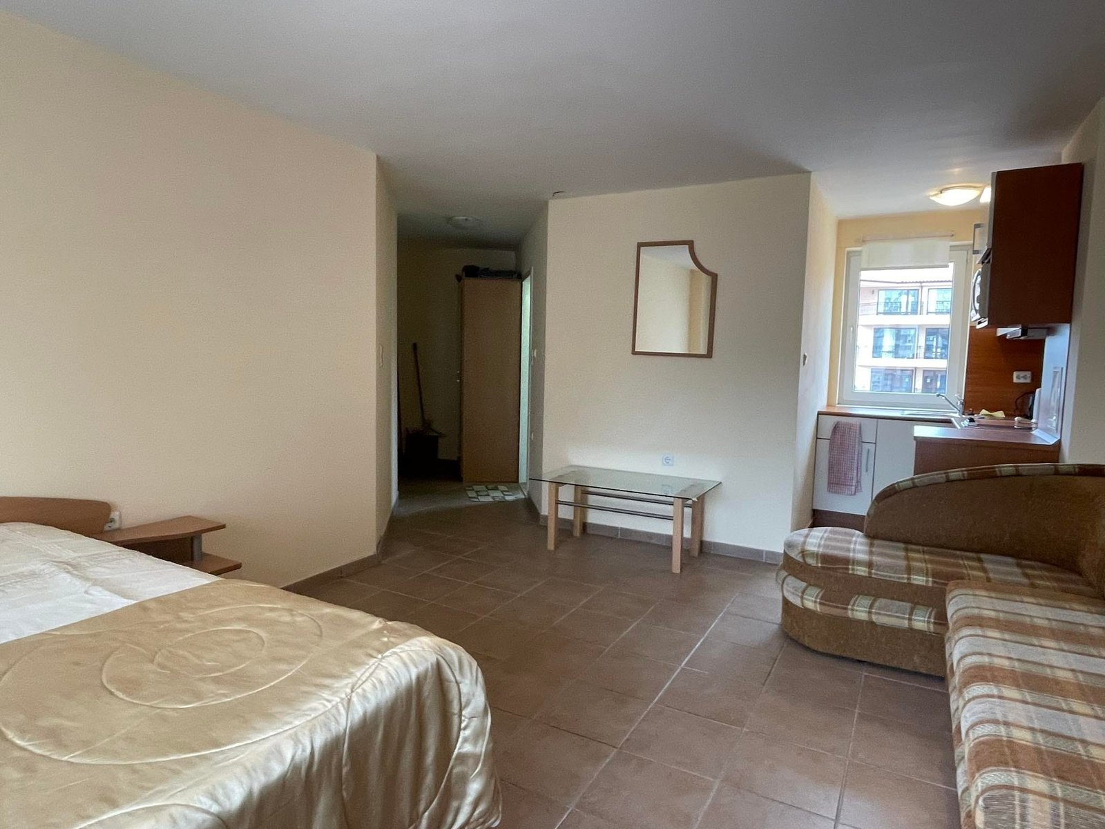 Studio apartment with total size with common parts 45.87 m2 and a built up area of 41 m2, located on the 4th floor of Aquamarine complex in Sunny Beach. The apartment consists of a living room with a kitchenette, hall-corridor, bathroom with toilet and a balcony overlooking neighbouring buildings.