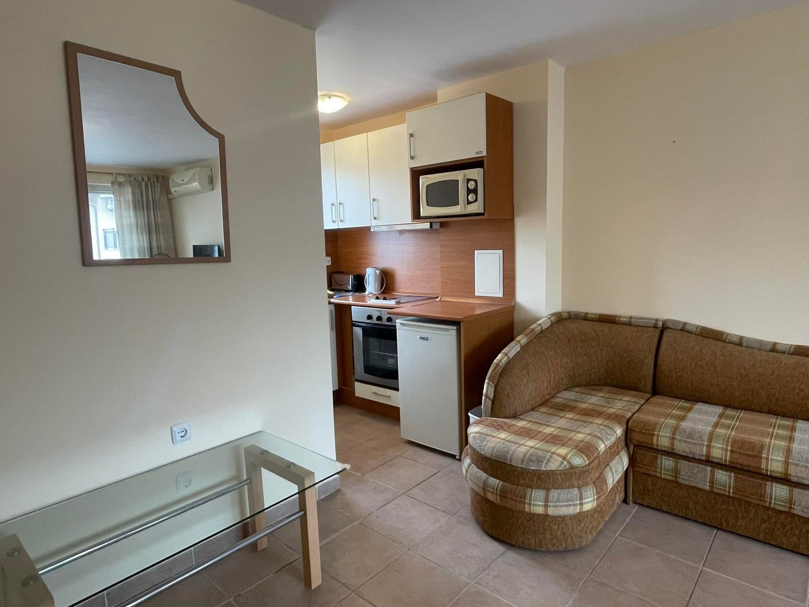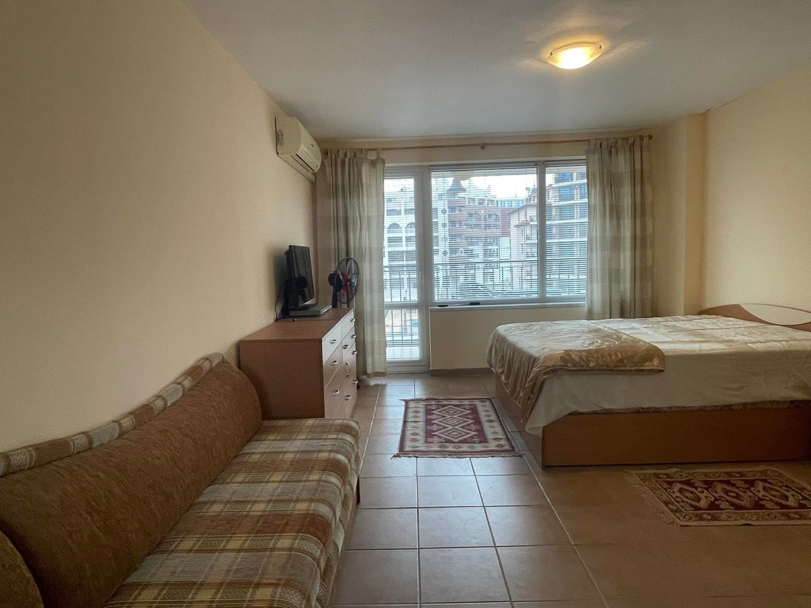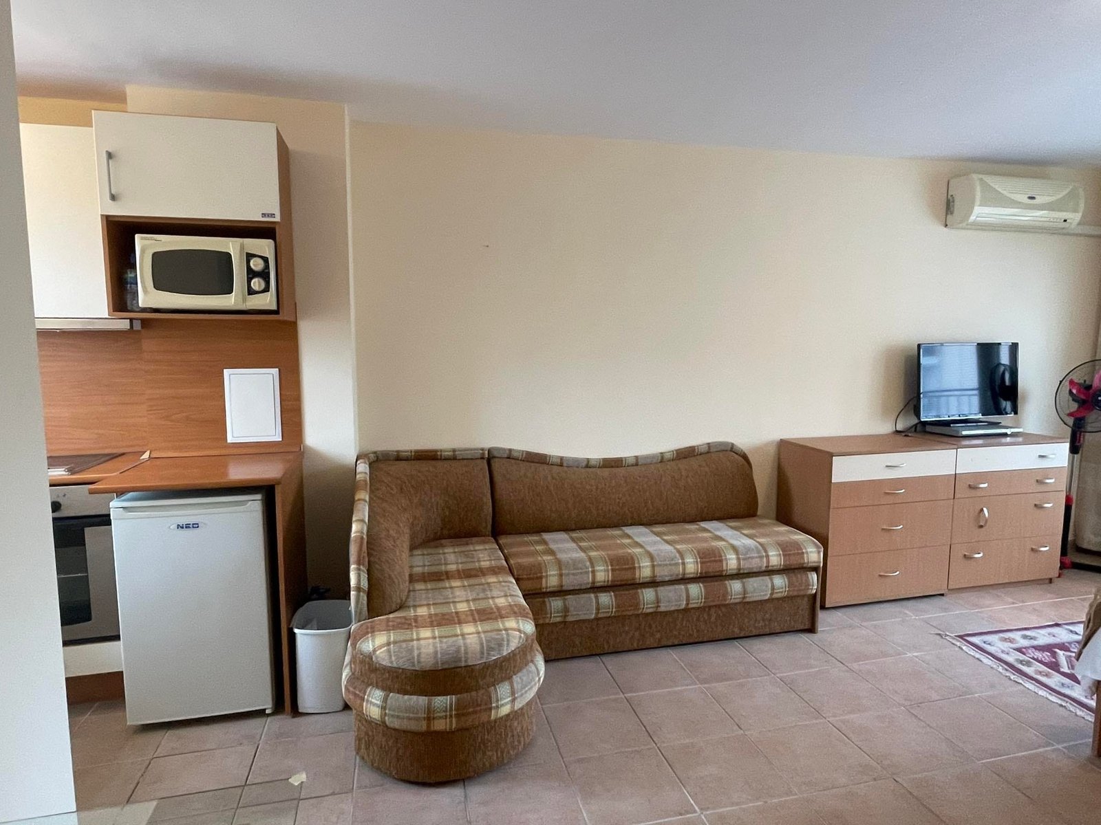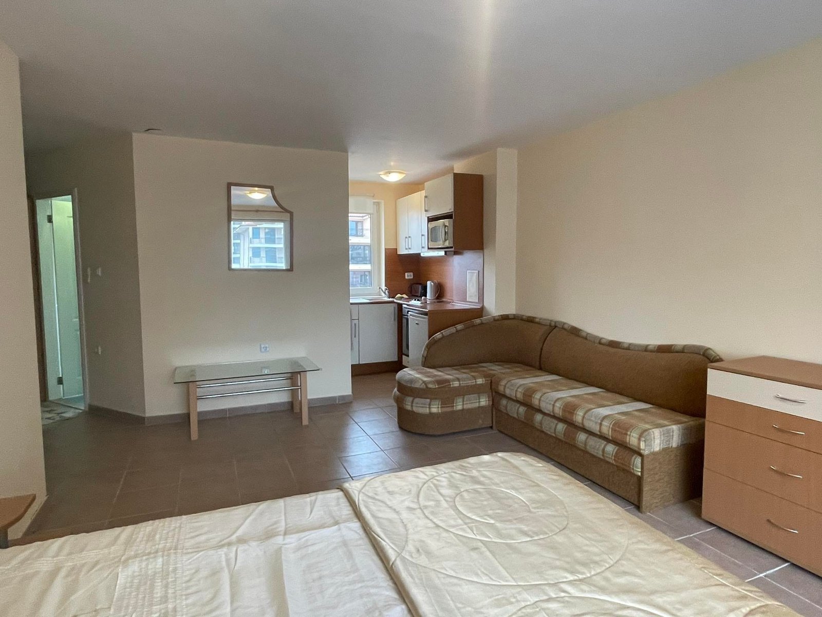 Studio apartment with total size with common parts 45.87 m2 and a built up area of 41 m2, located on the 4th floor of Aquamarine complex in Sunny Beach. The apartment consists of a living room with a kitchenette, hall-corridor, bathroom with toilet and a balcony overlooking neighbouring buildings.