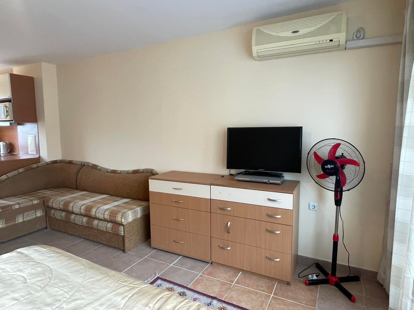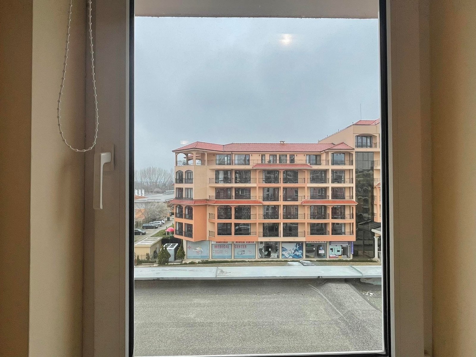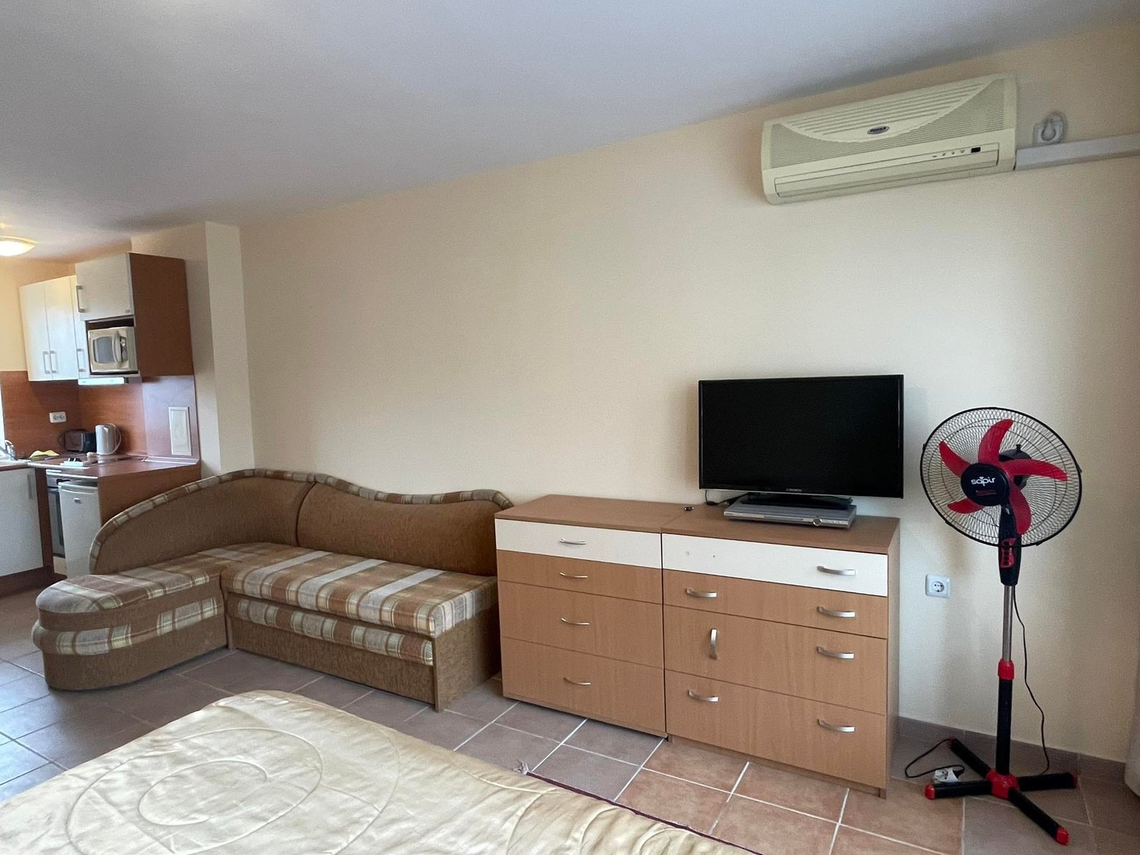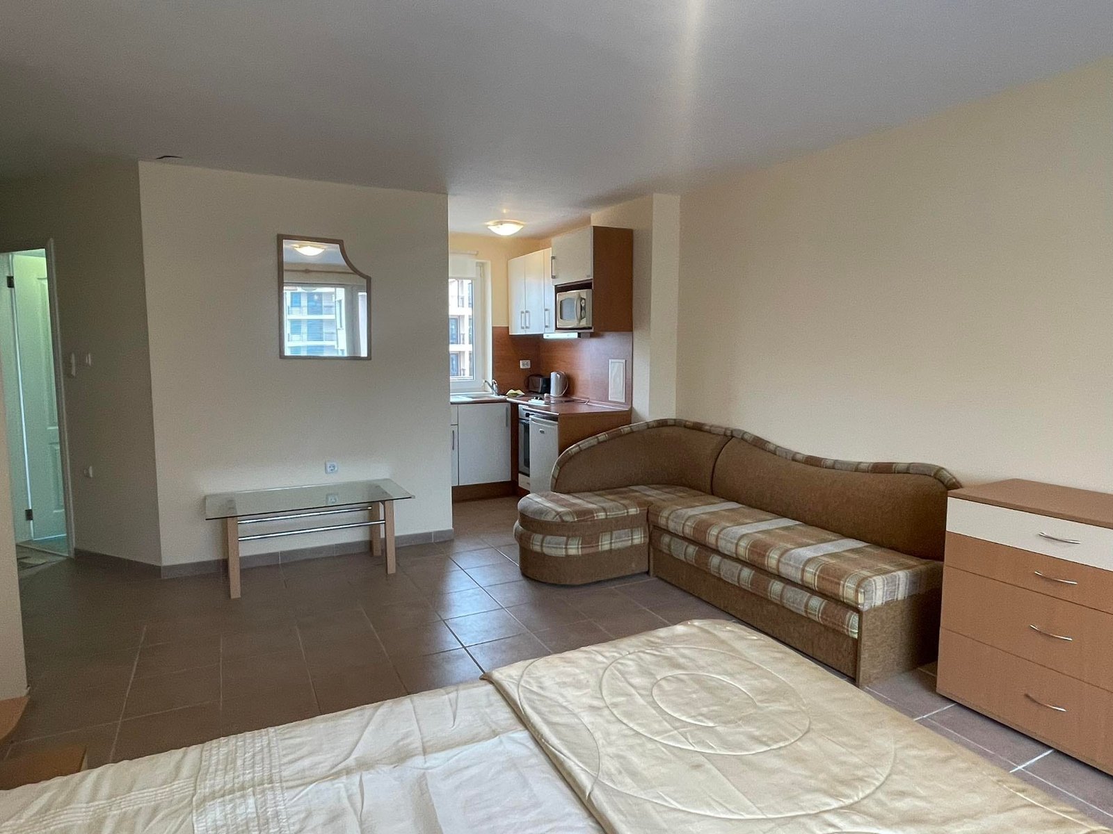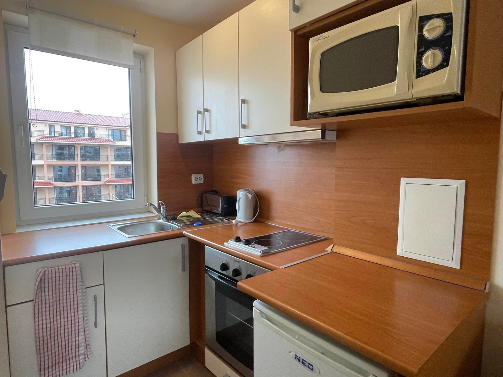 Studio apartment with total size with common parts 45.87 m2 and a built up area of 41 m2, located on the 4th floor of Aquamarine complex in Sunny Beach. The apartment consists of a living room with a kitchenette, hall-corridor, bathroom with toilet and a balcony overlooking neighbouring buildings.