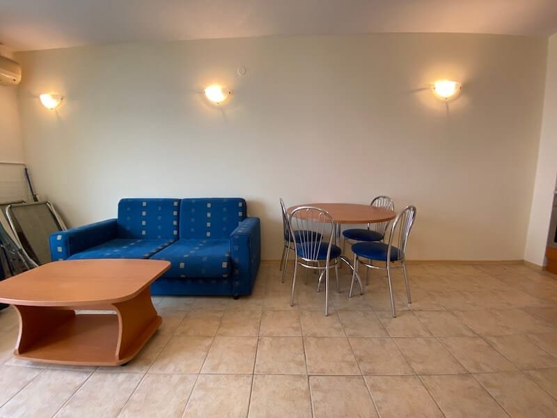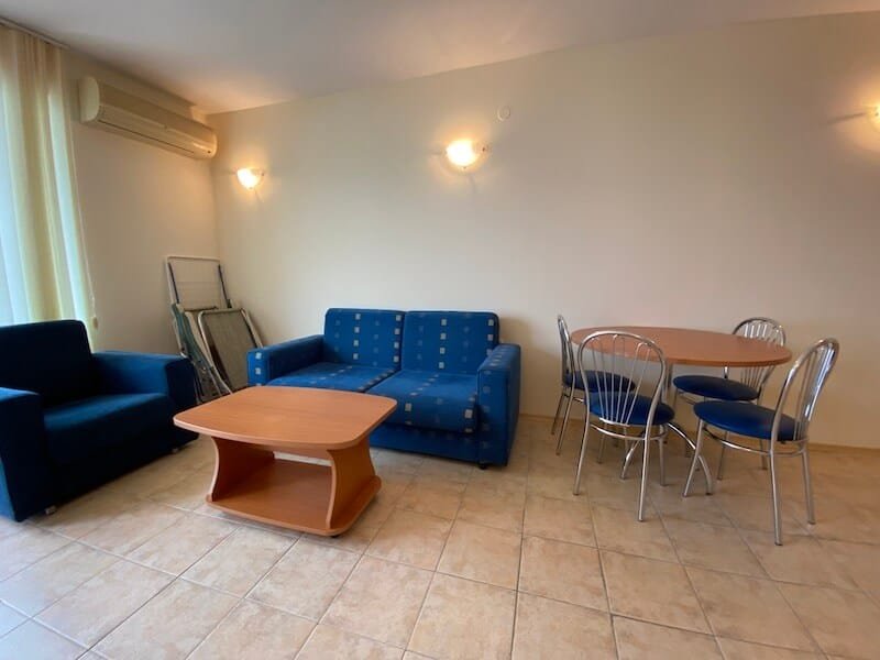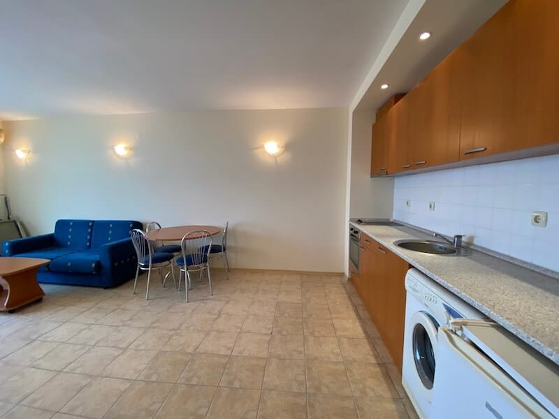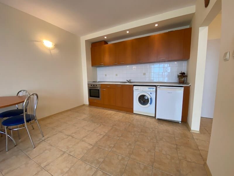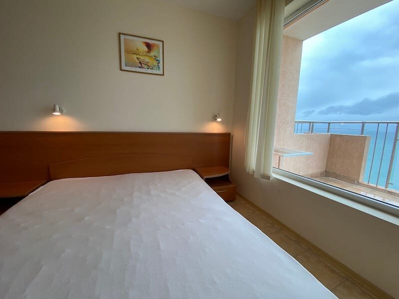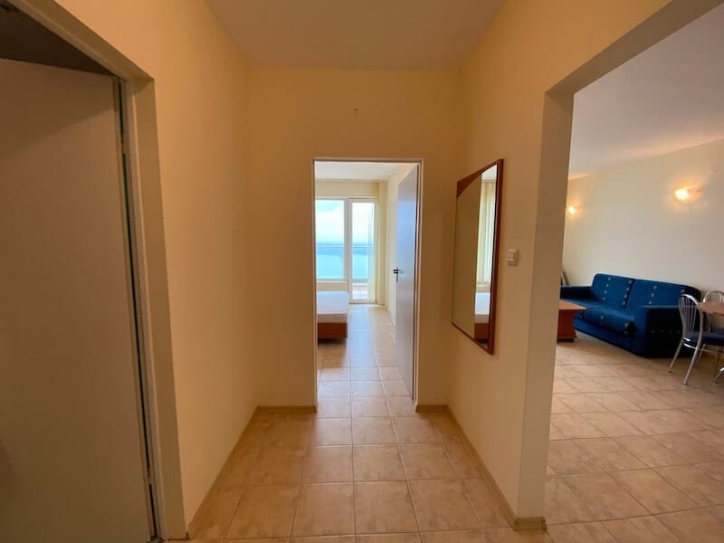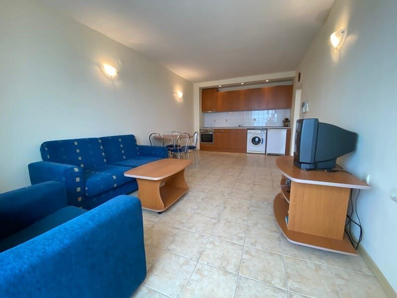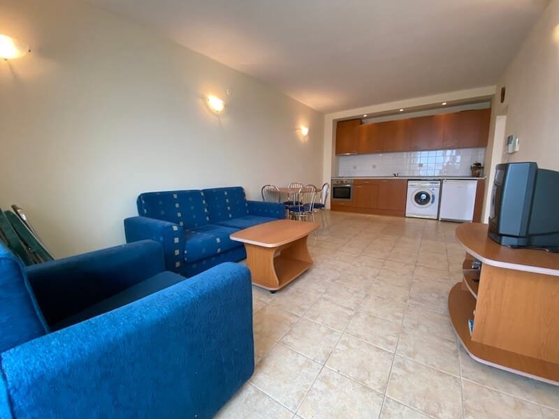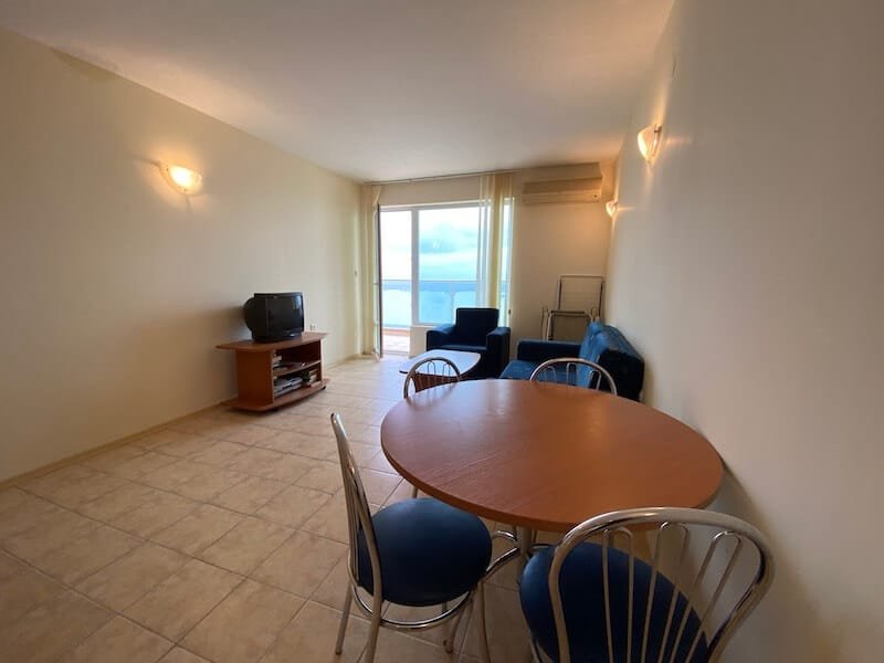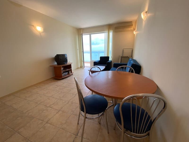 1 bedroom apartment with a total size of 77 m2, finished and offered fully furnished. The apartment is located on the 4th floor of the Coral Beach complex in Sveti Vlas. The apartment consists of a hall-corridor, a living room with a kitchenette, a bedroom and a balcony overlooking the sea (view from the south).