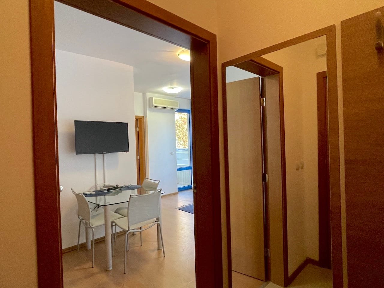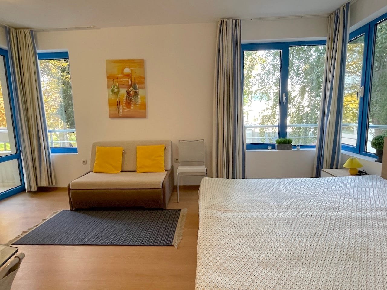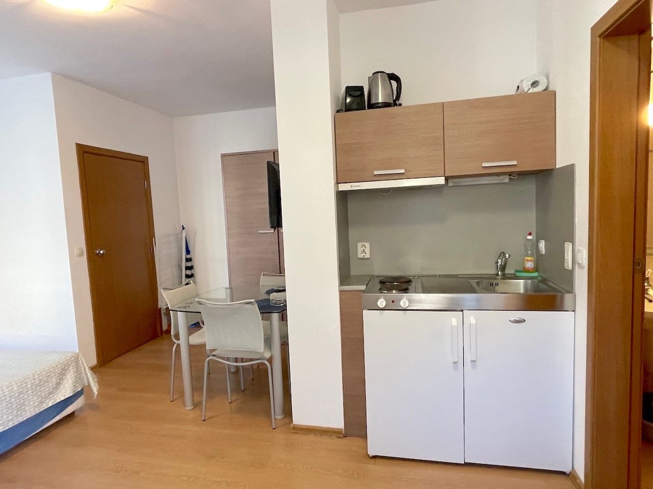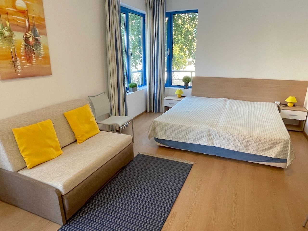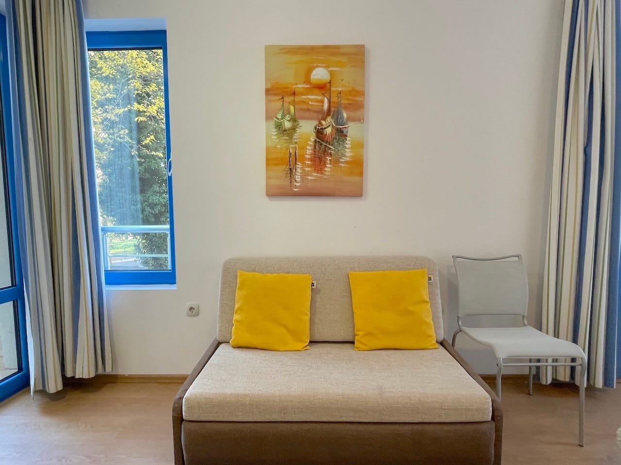 Jednopokojowe mieszkanie typu studio o powierzchni całkowitej 40 m2 i powierzchni użytkowej 34 m2, oferowane wykonczone i w pelni umeblowane. Mieszkanie znajduje sie na 1 piętrze kompleksu Excelsior w Słonecznym Brzegu i składa sie z przedpokoju-korytarza, salonu z aneksem kuchennym, łazienki z WC oraz balkonu z widokiem na sąsiednie zabudowania.