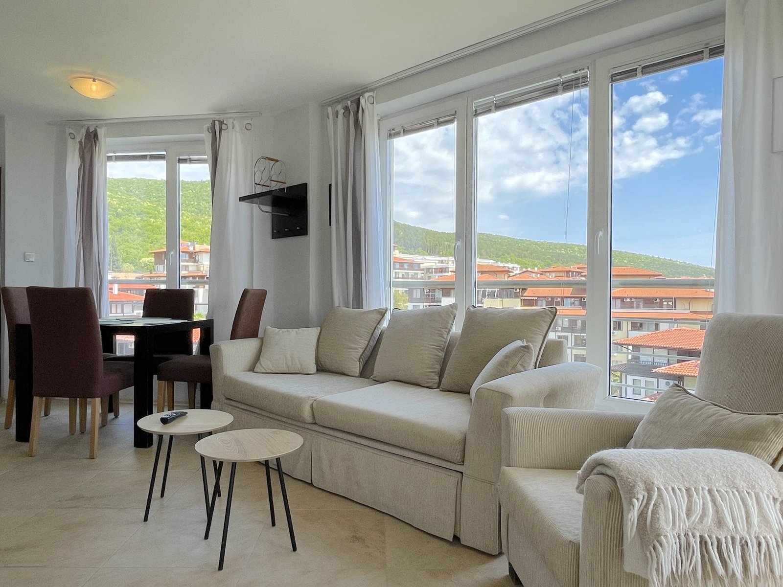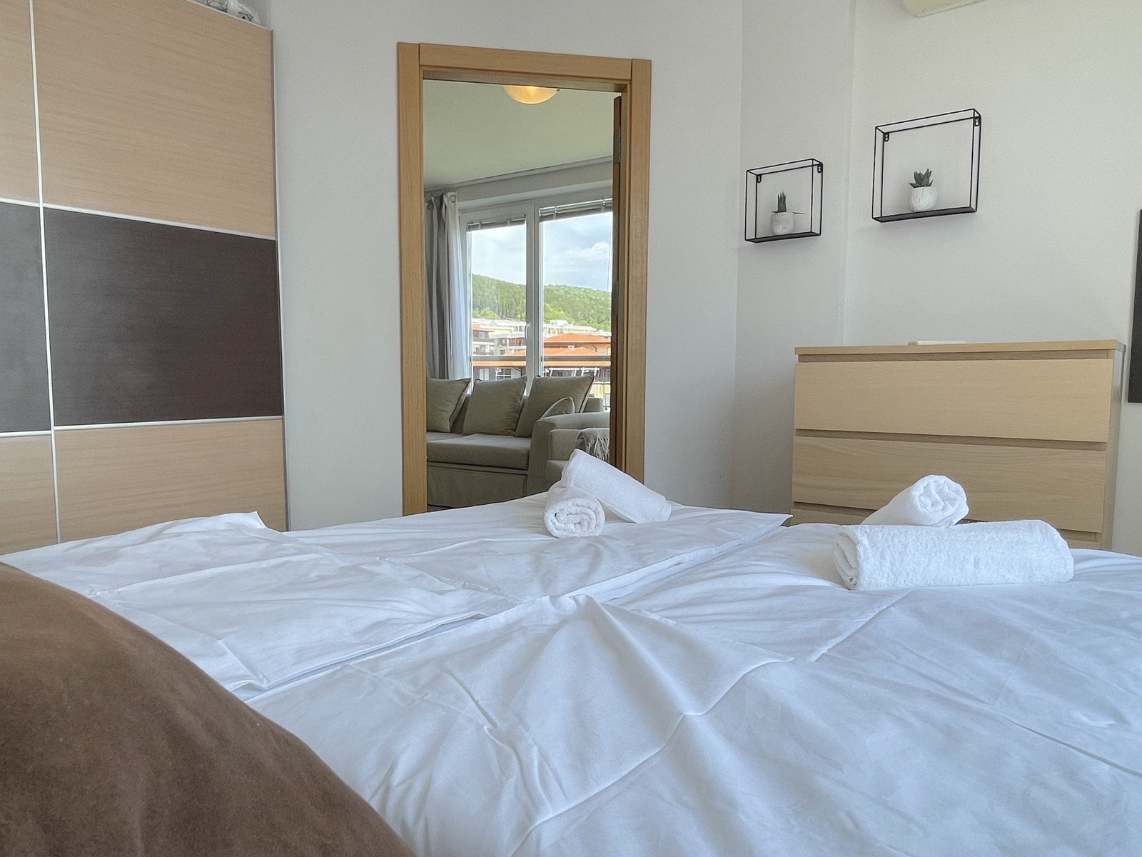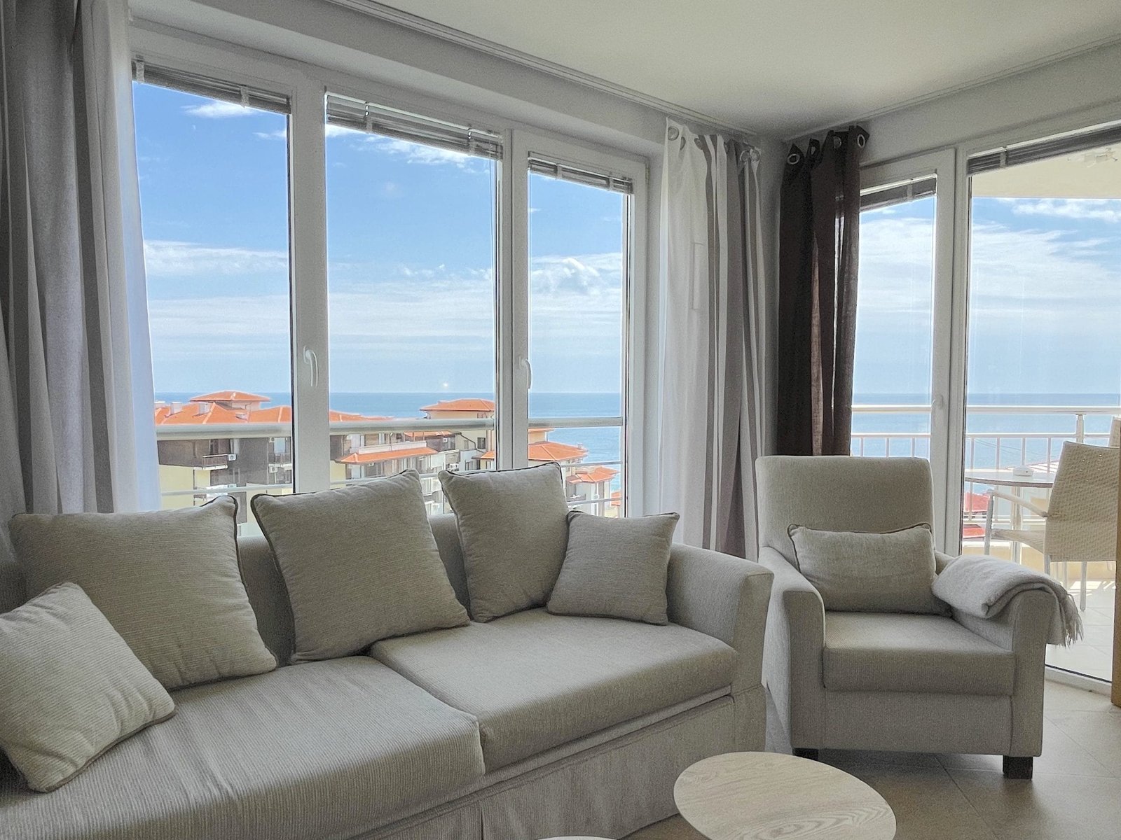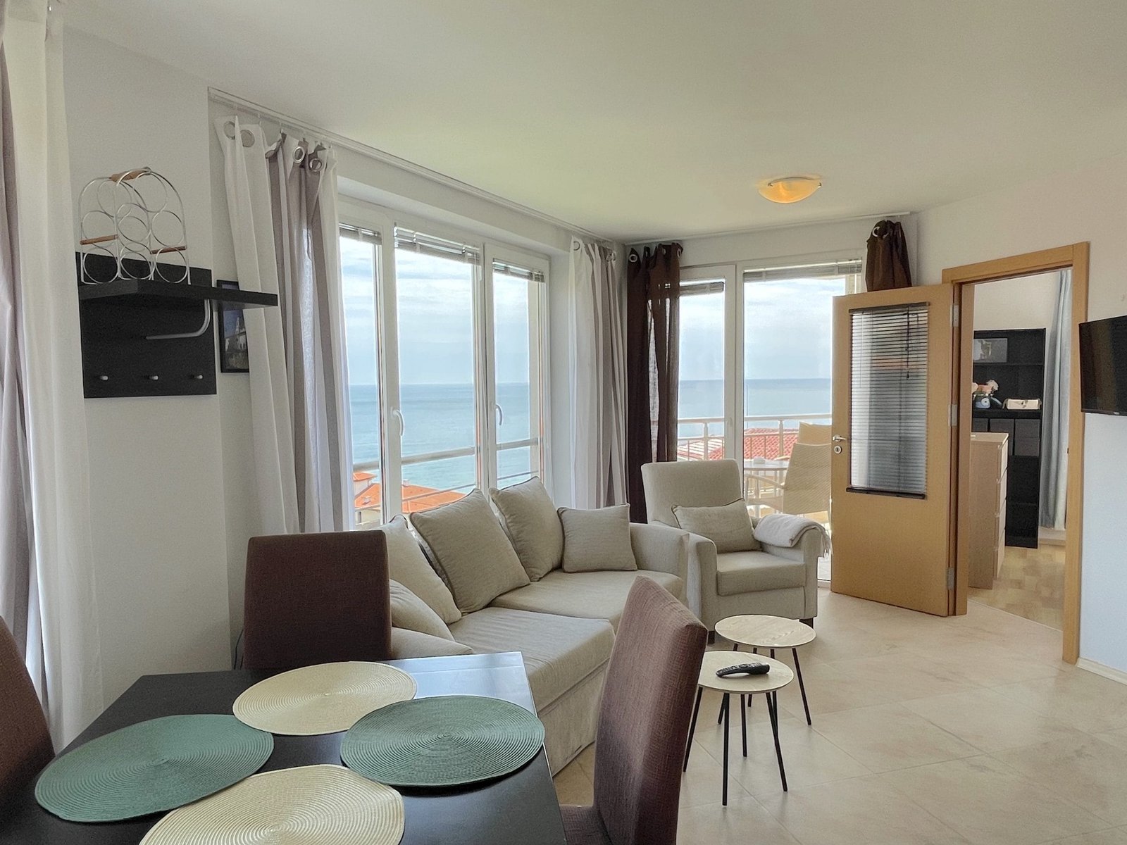Dwupokojowe mieszkanie o powierzchni całkowitej 57.39 m2 i powierzchni użytkowej 43.81 m2, wykończone i oferowane w pełni umeblowane. Mieszkanie znajduje się na 7 piętrze w kompleksie Galateya w Sveti Vlas. Mieszkanie składa się z przedpokoju, salonu z aneksem kuchennym, sypialni oraz balkonu z widokiem na basen i widokiem na morze.