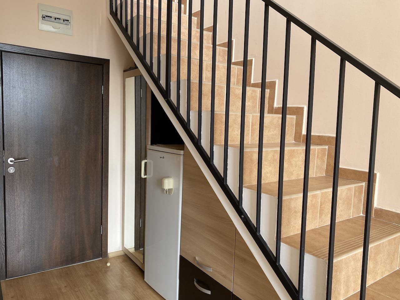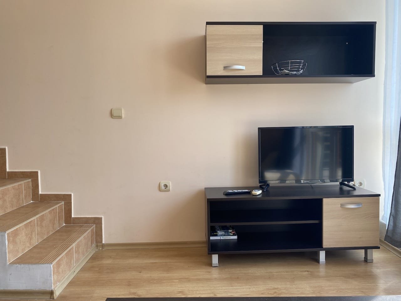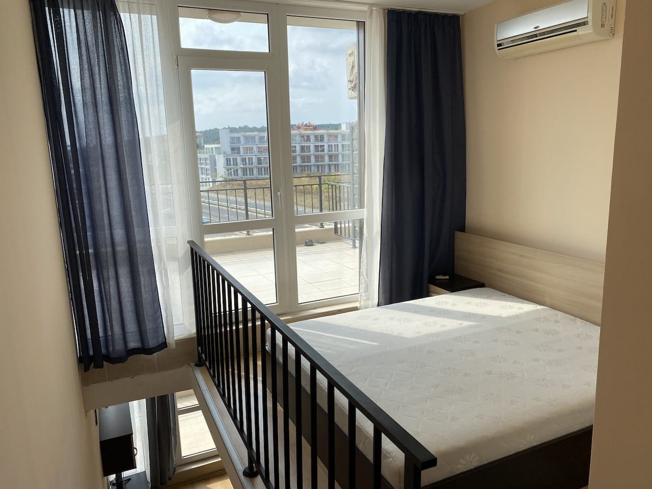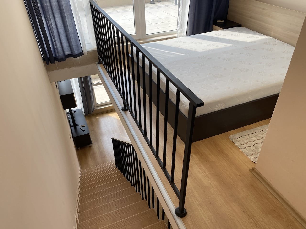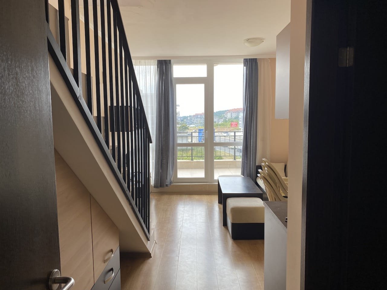 1 bedroom duplex apartment with a total size with common parts of 68.57 m2 and a build up area of 41.33 m2, finished and offered fully furnished. The apartment is located on the 4th floor of the Luxor complex in Sveti Vlas, about 250 meters from the beach. Apartment consists of (1st floor) living room with a kitchenette, bathroom with a toilet, balcony overlooking neighbouring buildings and the green area, (2nd floor) bedroom, bathroom with toilet, and another large balcony verlooking neighbouring buildings and the green area