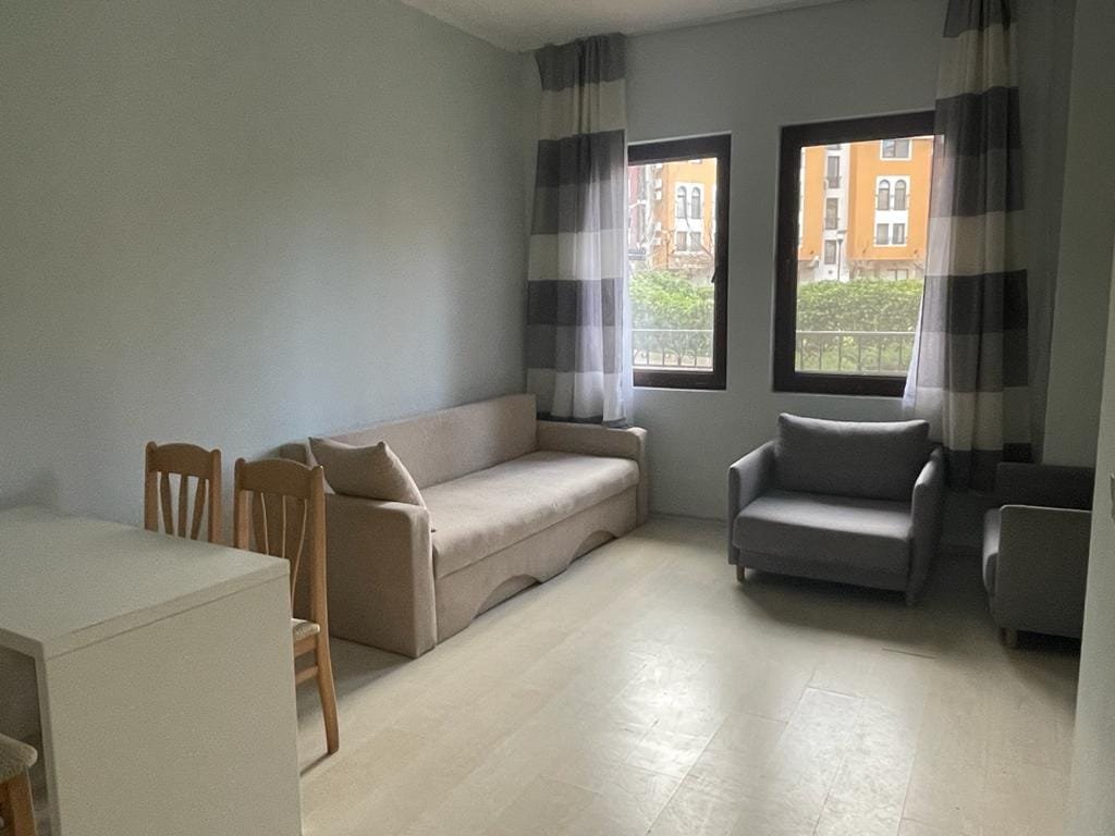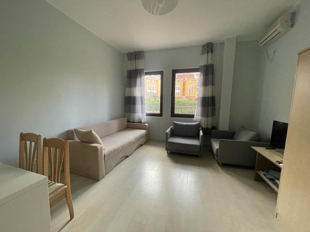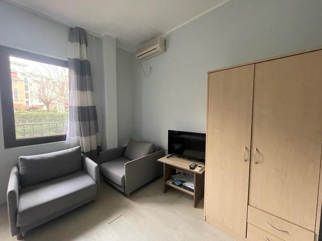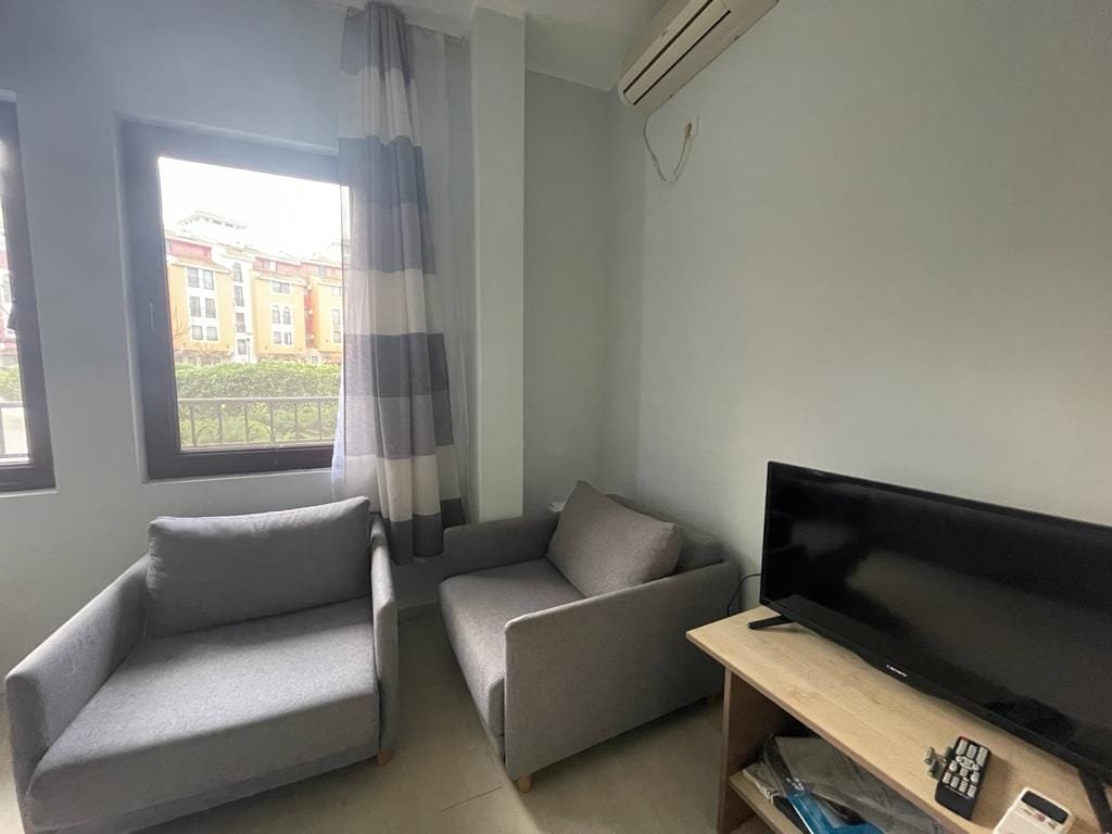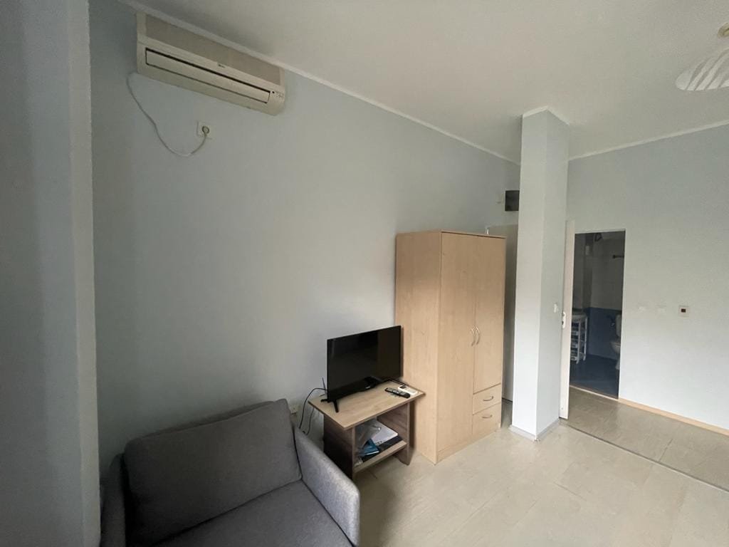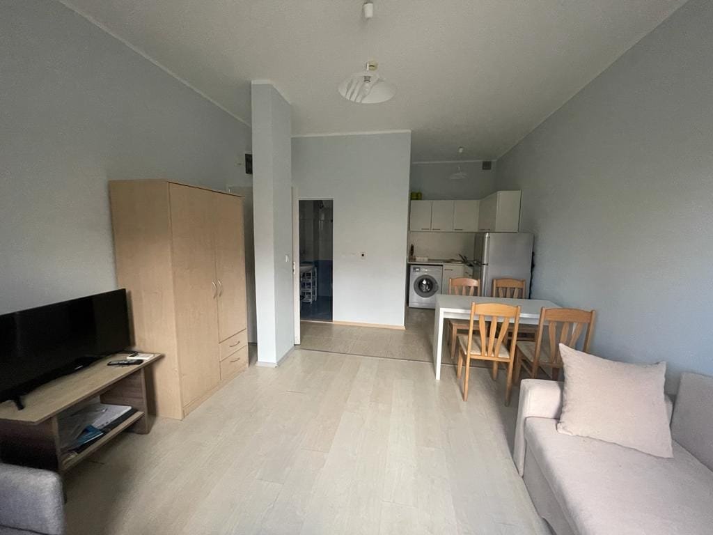 Studio apartment with a total size with common parts of 32.75 m2 and a built-up area of 28.35 m2, finished and offered fully furnished. The apartment is located on the ground floor of Marina Cape in Shelley. The apartment consists of a living room with a kitchenette, a bathroom with a toilet.