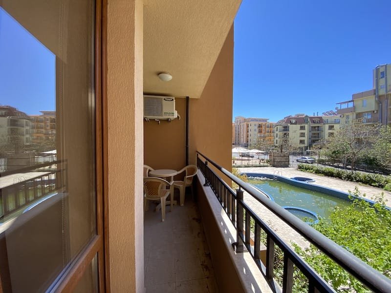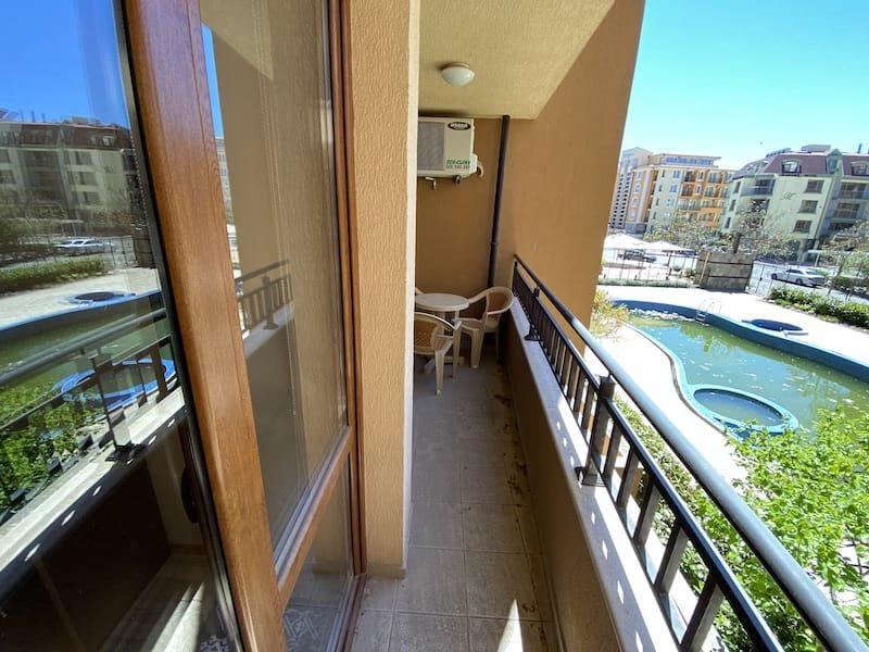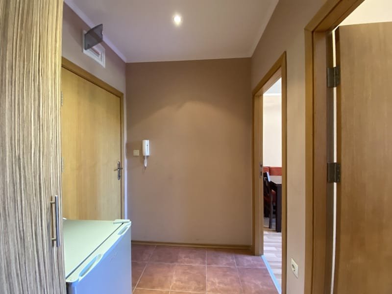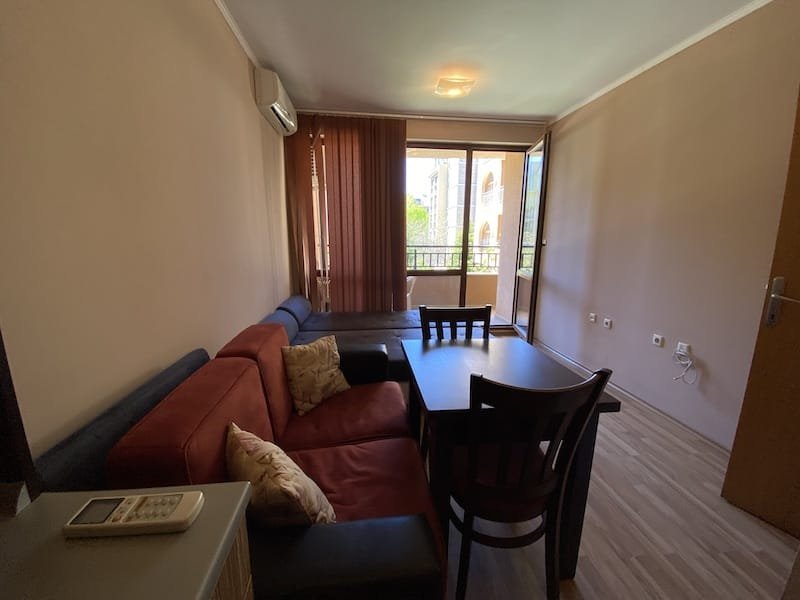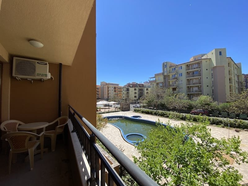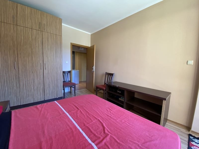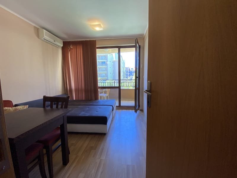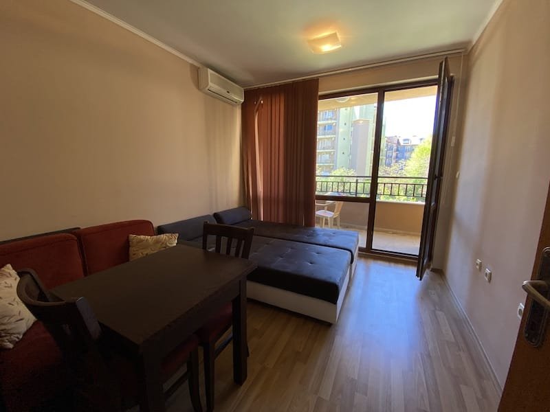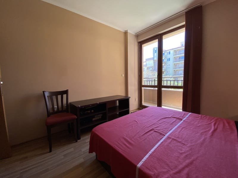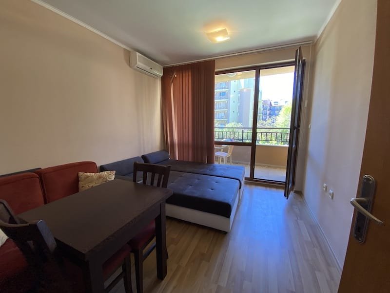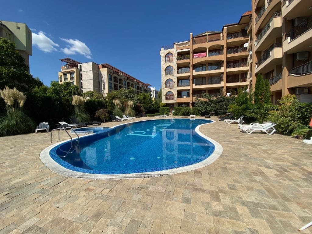 1 bedroom apartment with a total area of 54 m2, offered fully finished and furnished. The apartment is located on the 2nd floor in the Pacific 2 complex in Sunny Beach. The apartment consists of a hall-corridor, a living room with a kitchenette, a bathroom with a toilet, a bedroom and a balcony with a view of the swimming pool and neighboring buildings.