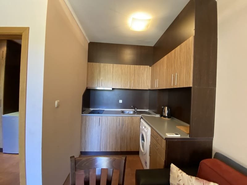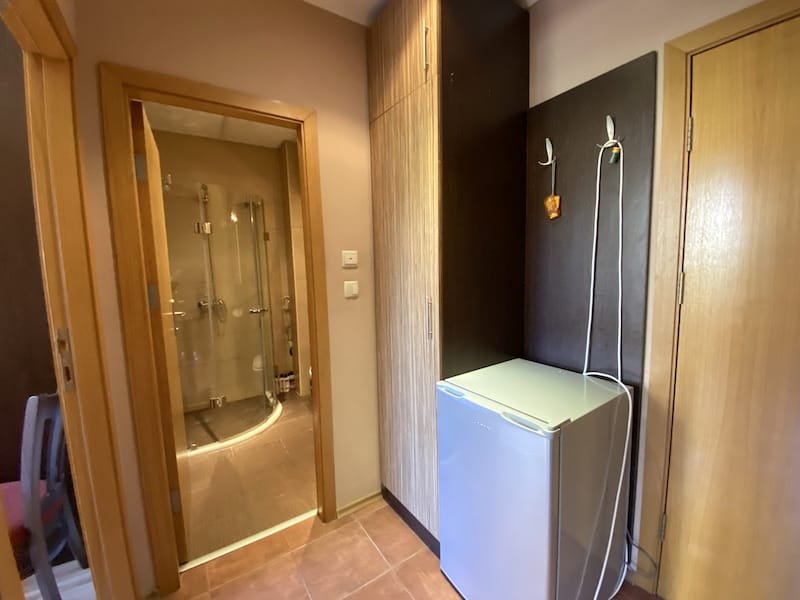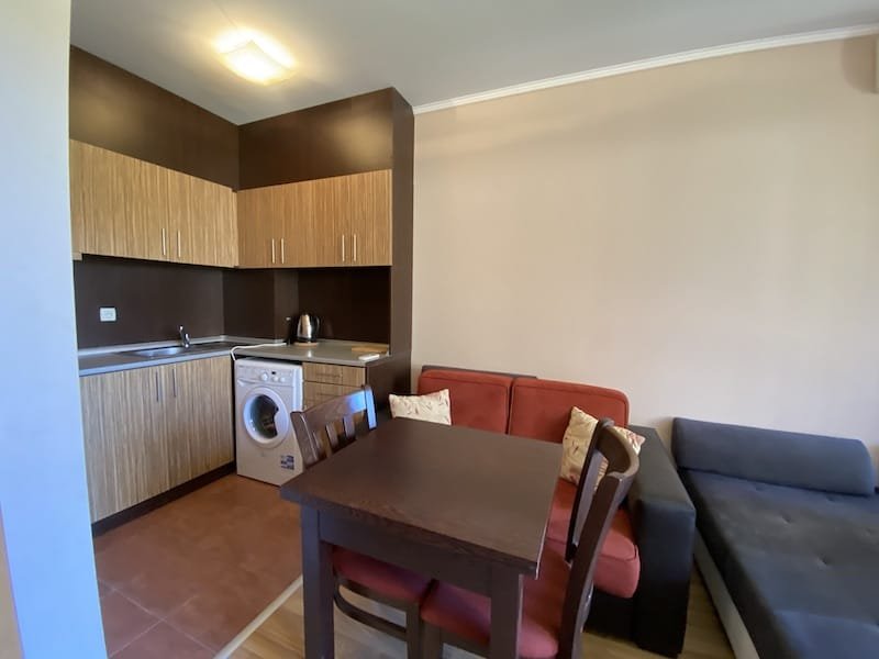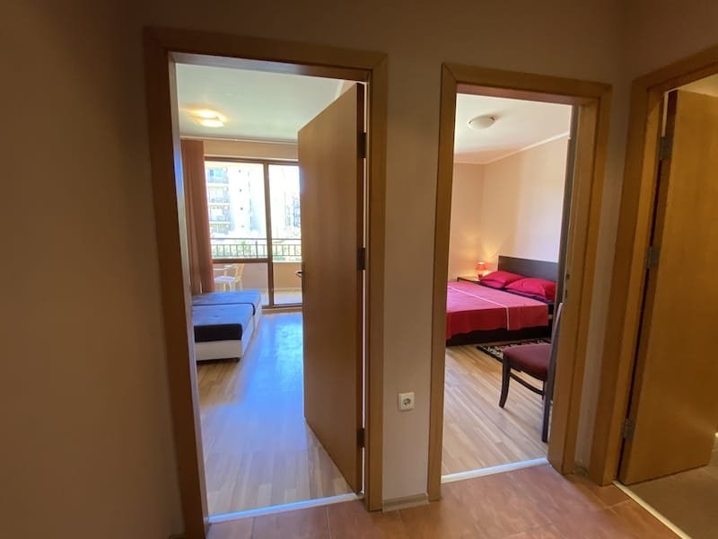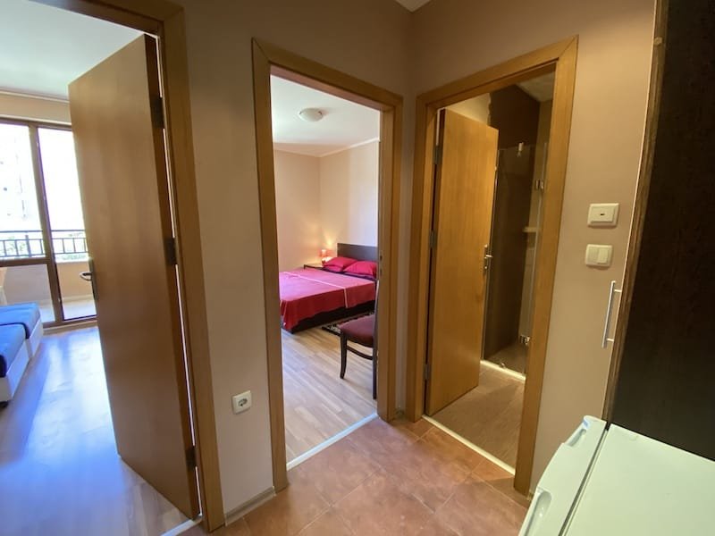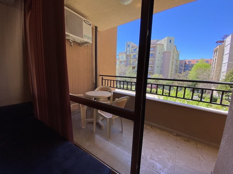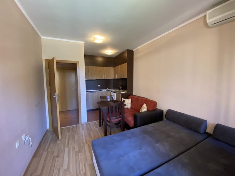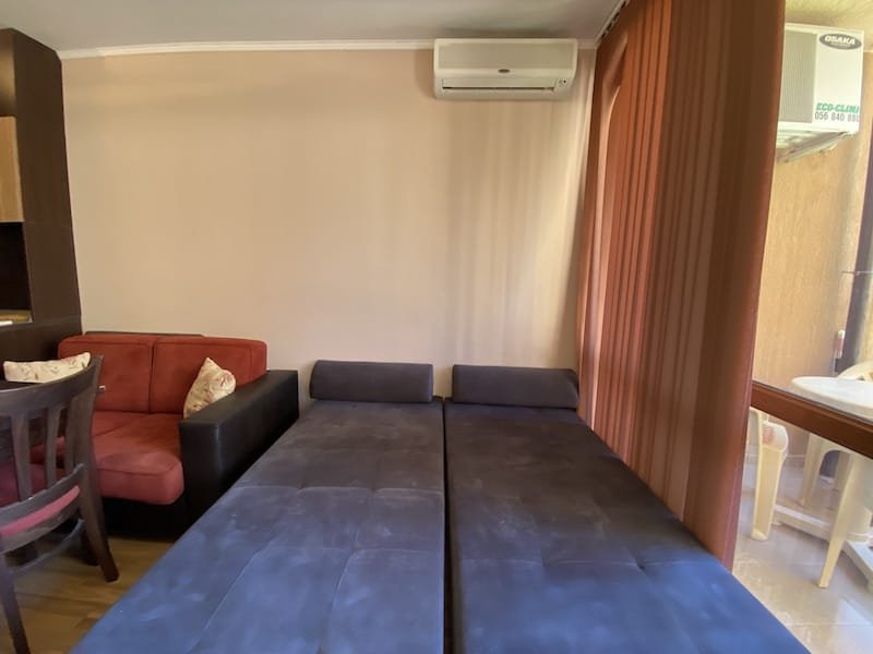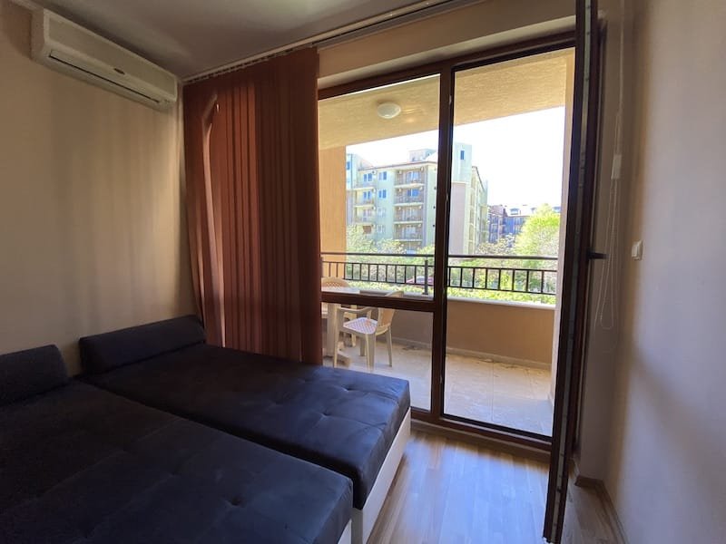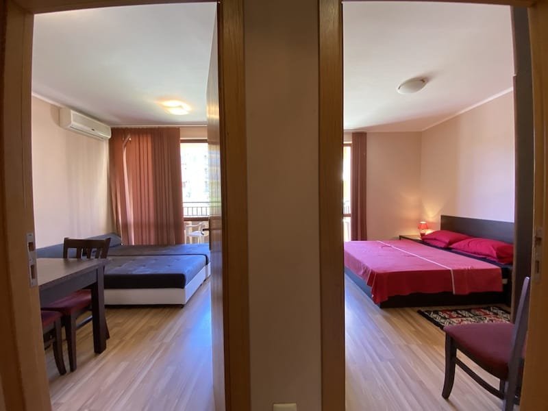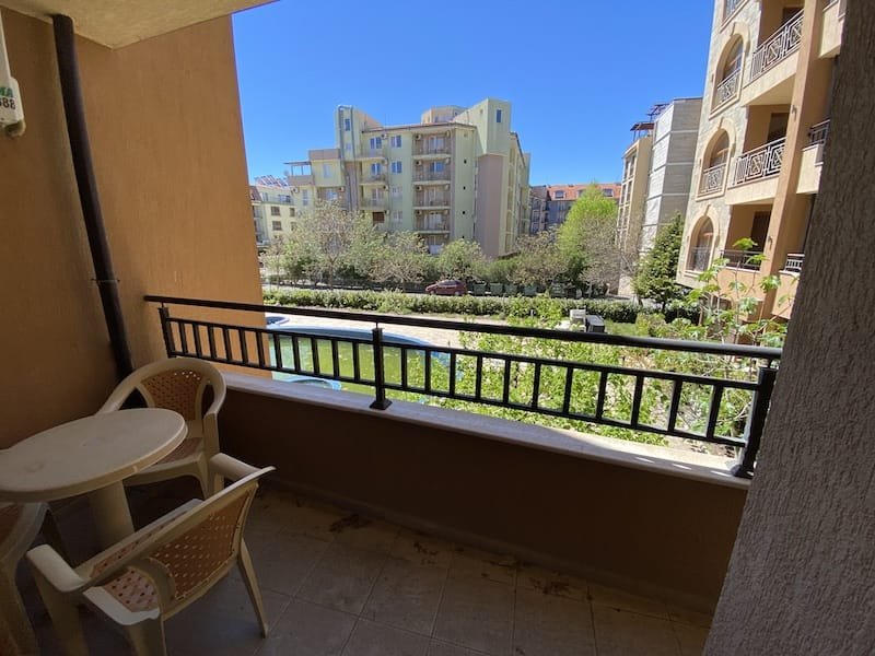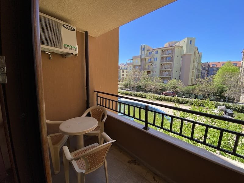 1 bedroom apartment with a total area of 54 m2, offered fully finished and furnished. The apartment is located on the 2nd floor in the Pacific 2 complex in Sunny Beach. The apartment consists of a hall-corridor, a living room with a kitchenette, a bathroom with a toilet, a bedroom and a balcony with a view of the swimming pool and neighboring buildings.