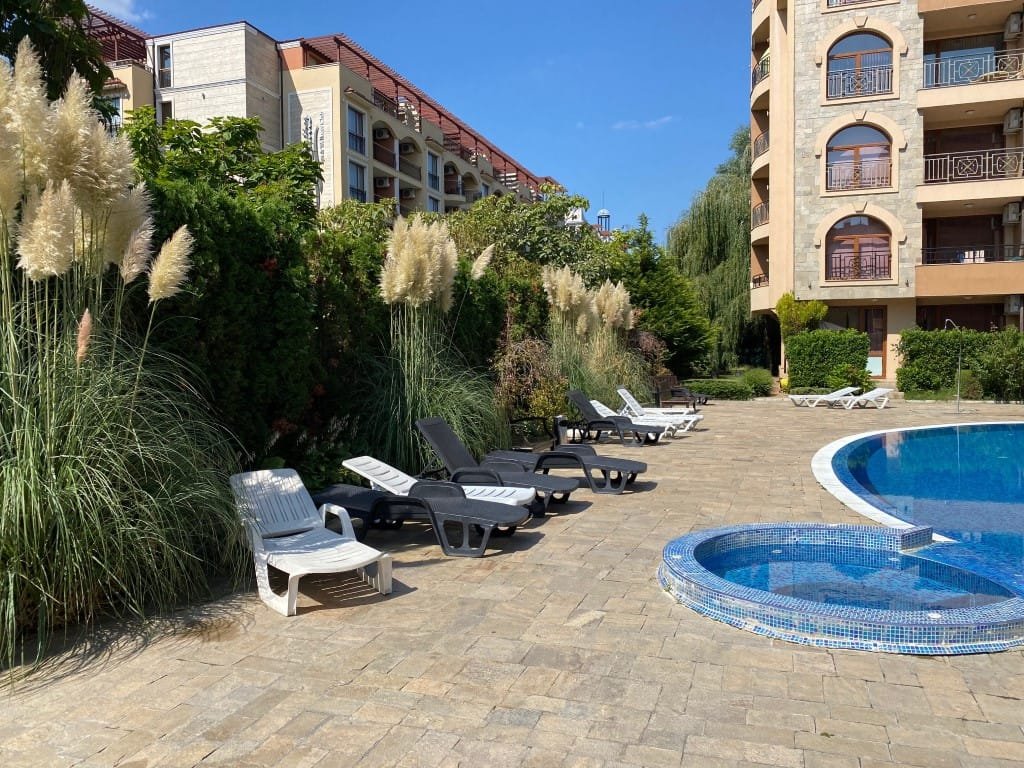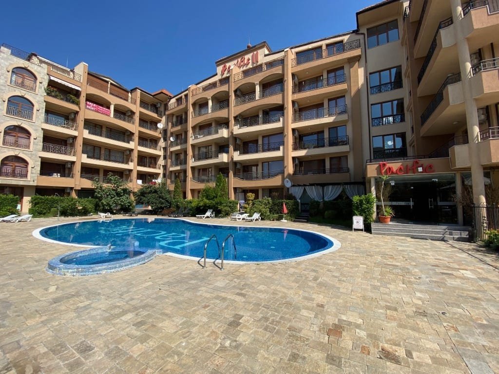 The Pacific 2 complex is located in the central part of Sunny Beach, about 500 meters from the sea and the beach, in the vicinity of numerous shops, bars and restaurants. The facility was commissioned in 2008 and is a 6-storey U-shaped building with a 24-hour reception desk, 24-hour security and monitoring, a guarded parking lot, a swimming pool with a section for children, a restaurant and a bar.