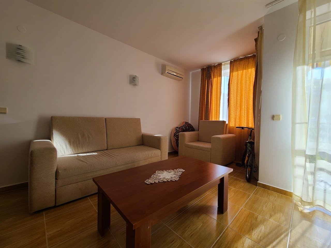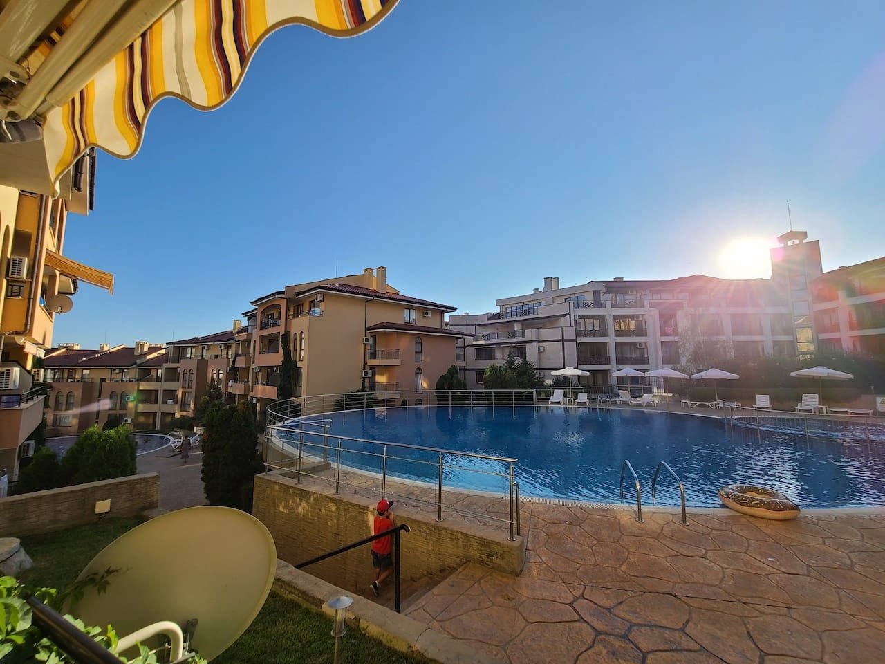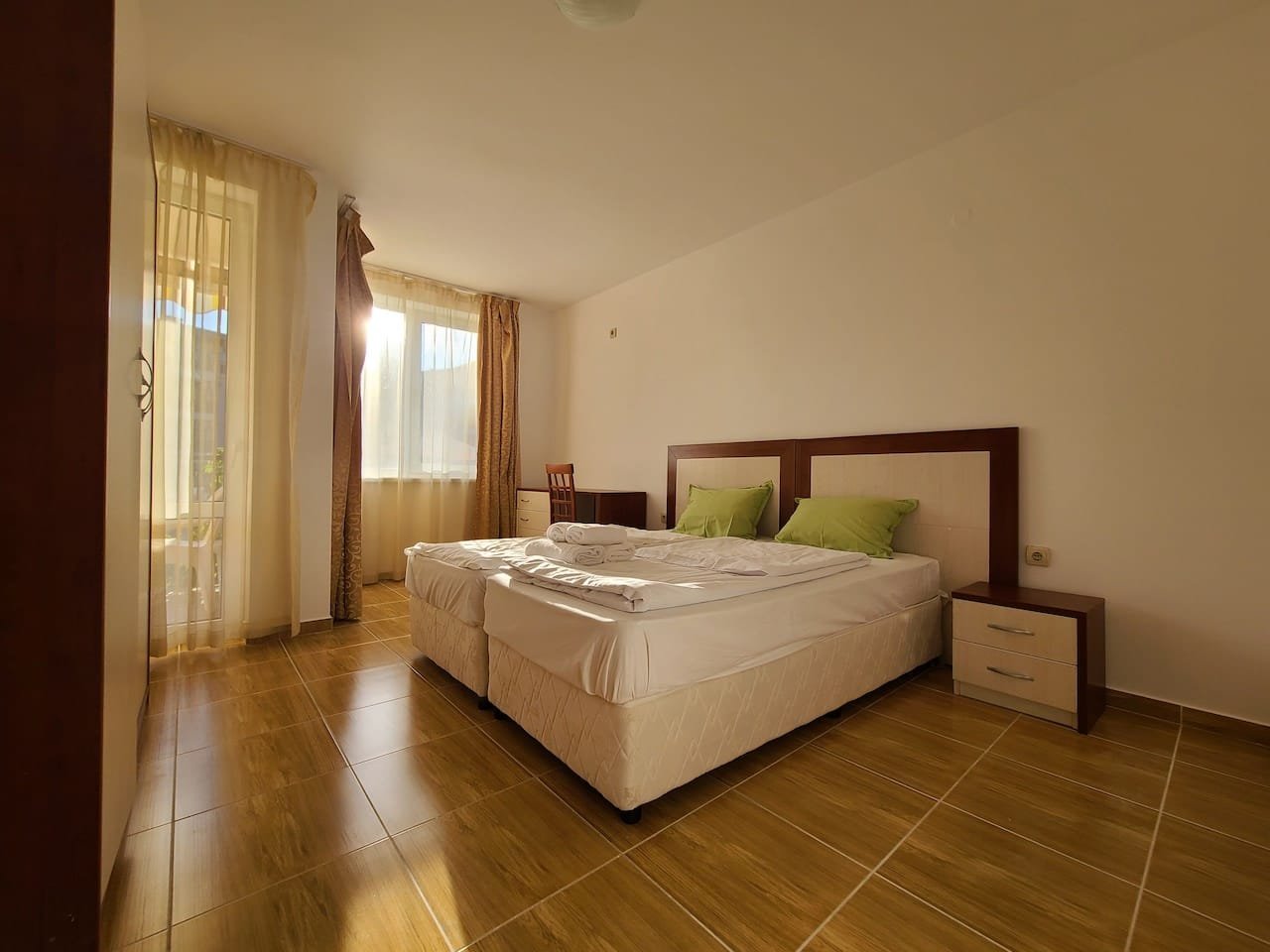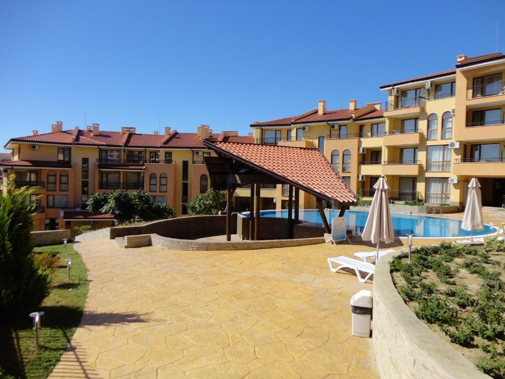 The apartment is located in the “Paradise Dreams” complex, Sveti Vlas, only 200 meters from the beach and the sea. For the convenience of guests, the reception is open 24 hours a day. For children there is a playground on the adjacent territory. Guests can leave their car in the free parking lot. The hotel has a cozy restaurant. Taking care of the guests, a mini market was opened on the territory where you can buy food and cosmetics. Wi-Fi is provided in public and residential areas of the property. The area is sufficiently communicative.