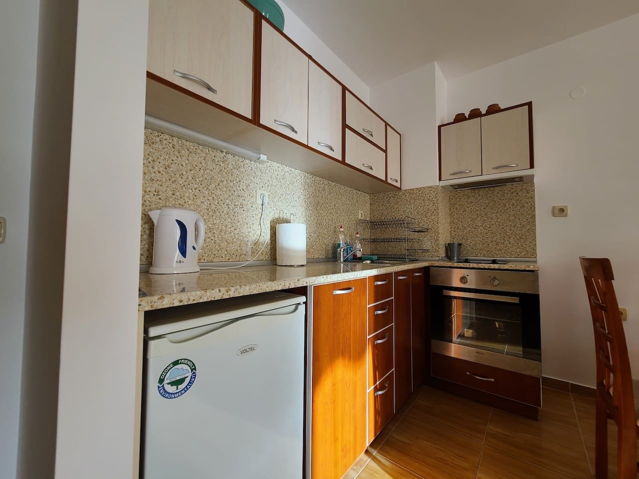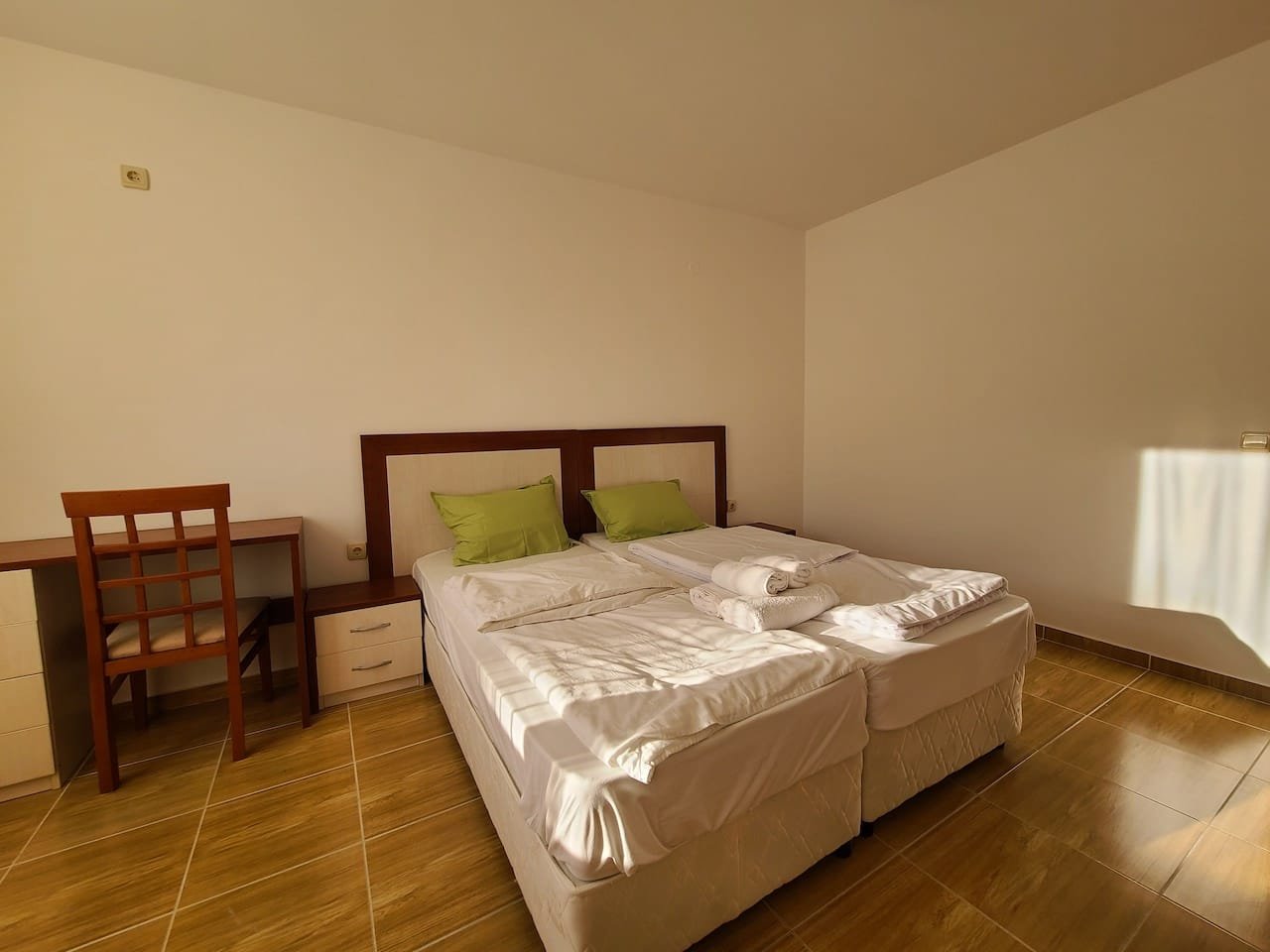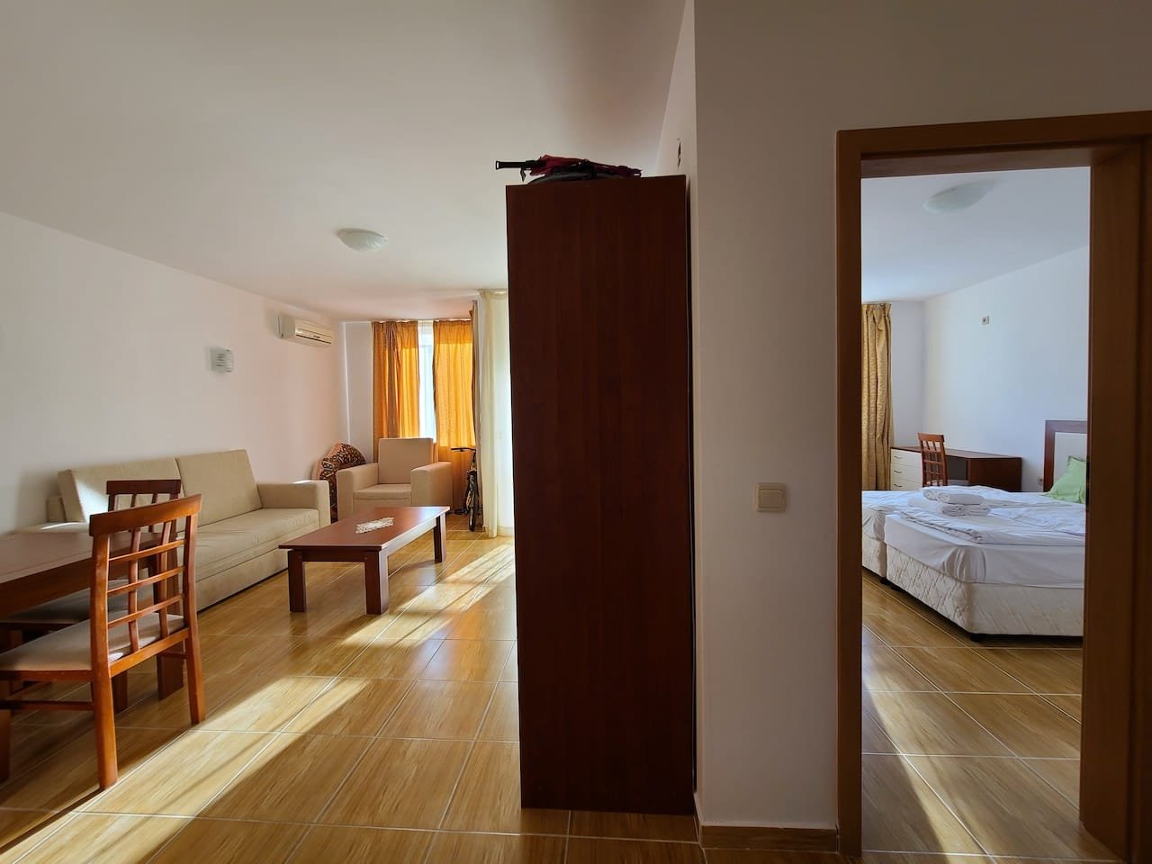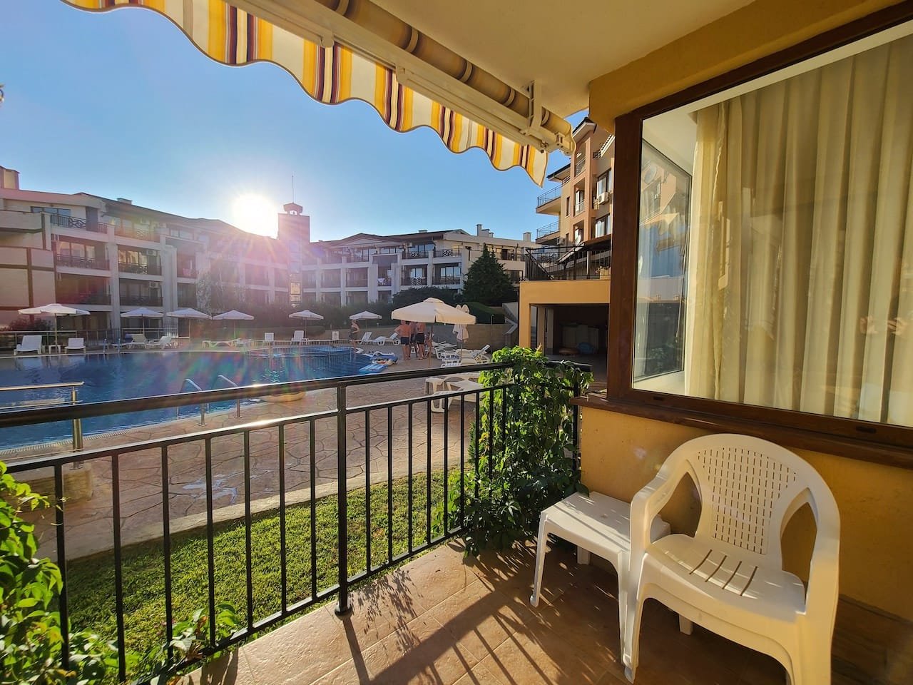 The apartment is located in the “Paradise Dreams” complex, Sveti Vlas, only 200 meters from the beach and the sea. For the convenience of guests, the reception is open 24 hours a day. For children there is a playground on the adjacent territory. Guests can leave their car in the free parking lot. The hotel has a cozy restaurant. Taking care of the guests, a mini market was opened on the territory where you can buy food and cosmetics. Wi-Fi is provided in public and residential areas of the property. The area is sufficiently communicative.