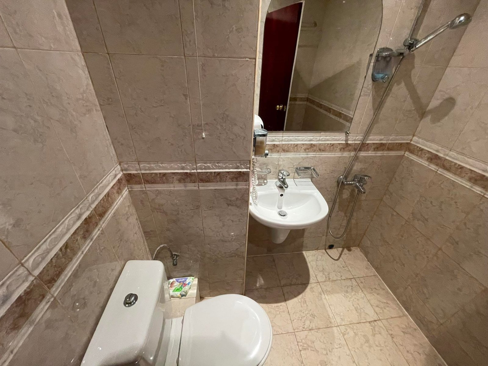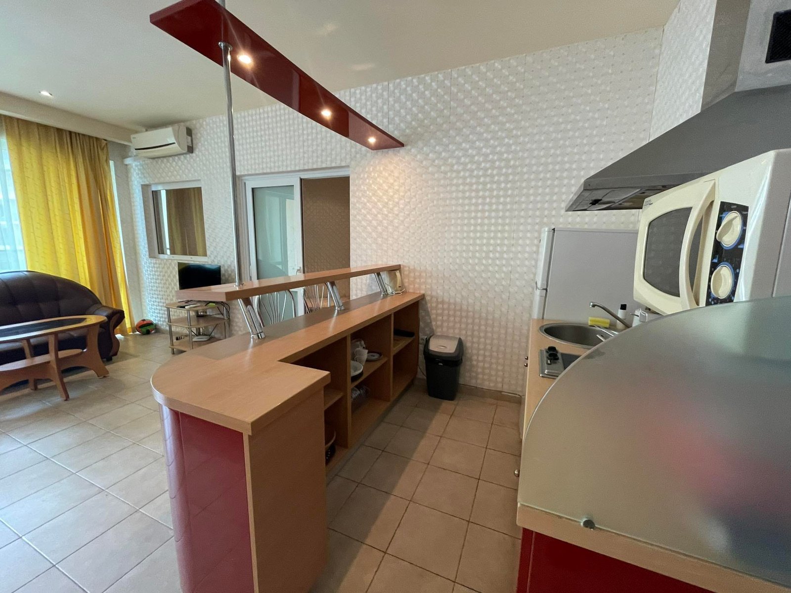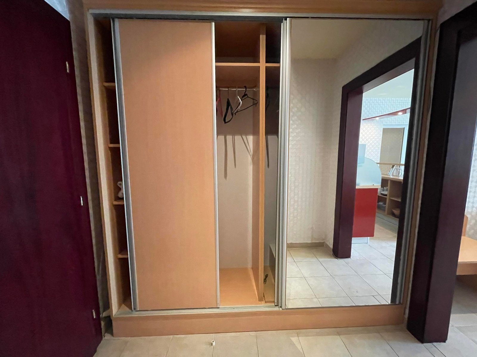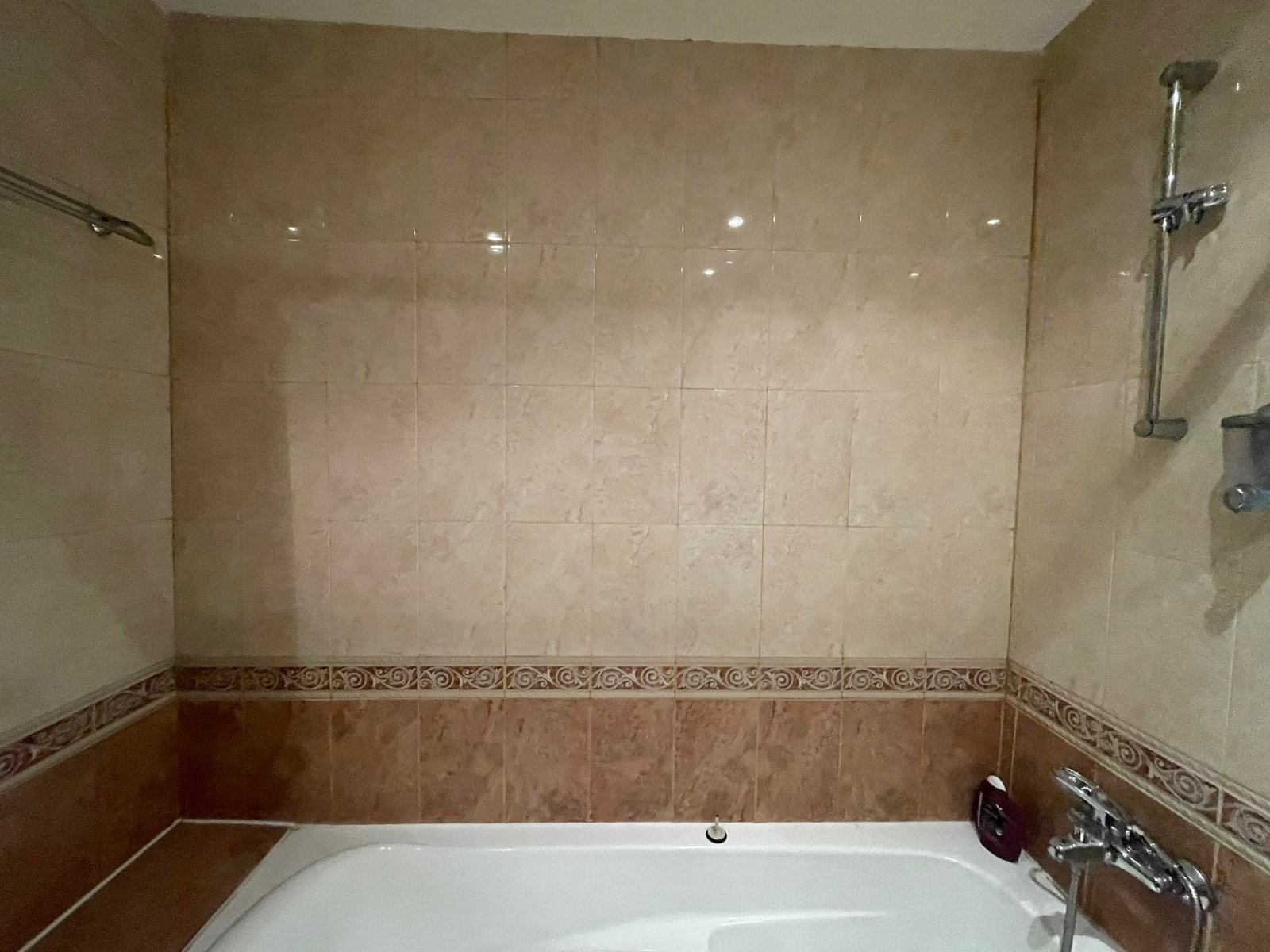 One-bedroom apartment with a total size with common parts of 82.15 sq.m., located on the 5th floor in Miramar Palace. The apartment consists of a large living room with a kitchenette, a bedroom, a wide corridor with a closet, an entrance hall, 2 bathrooms with a toilet, one of which has a bathtub, and a terrace with a view of the pool and the neighboring buildings.