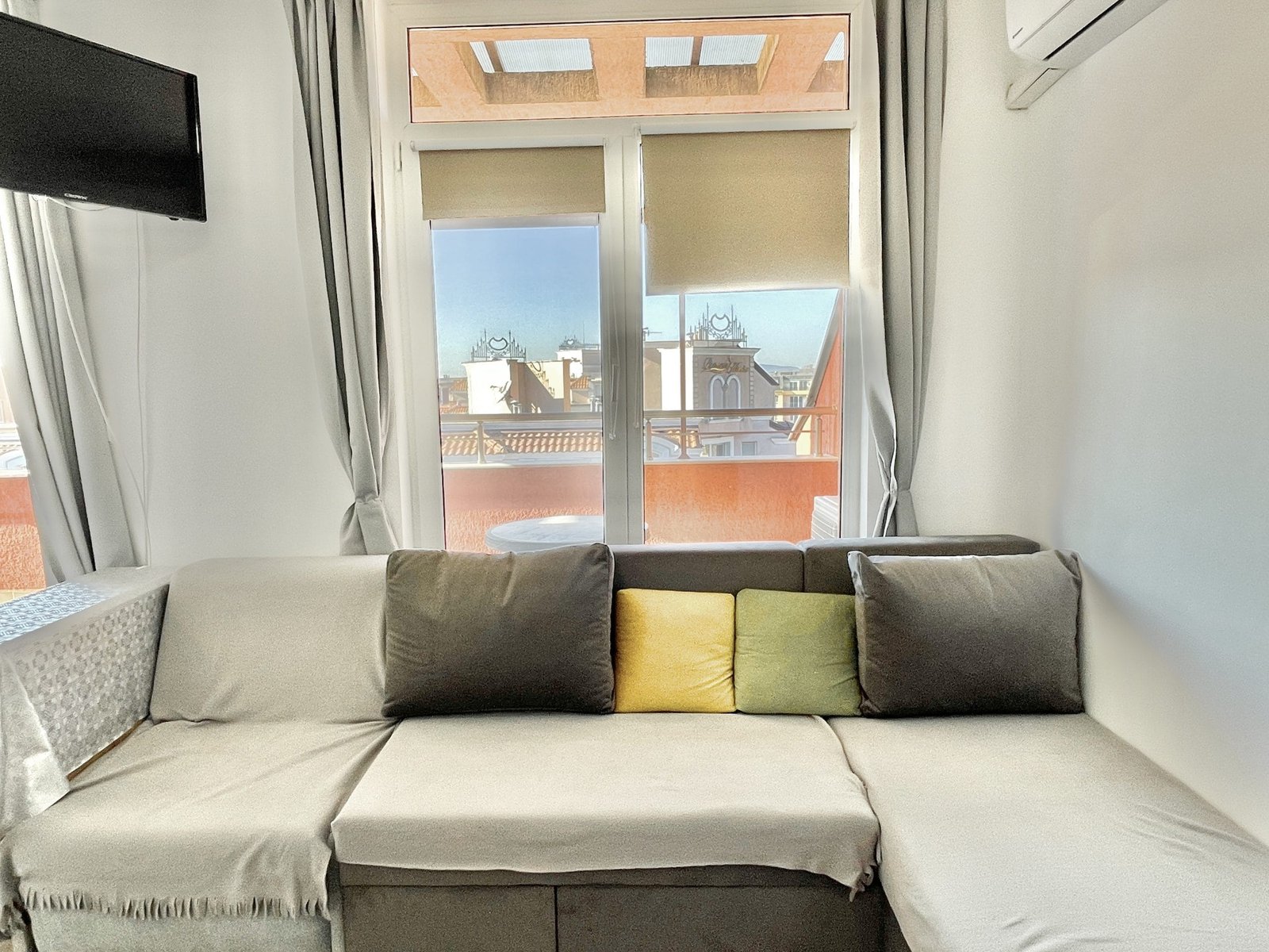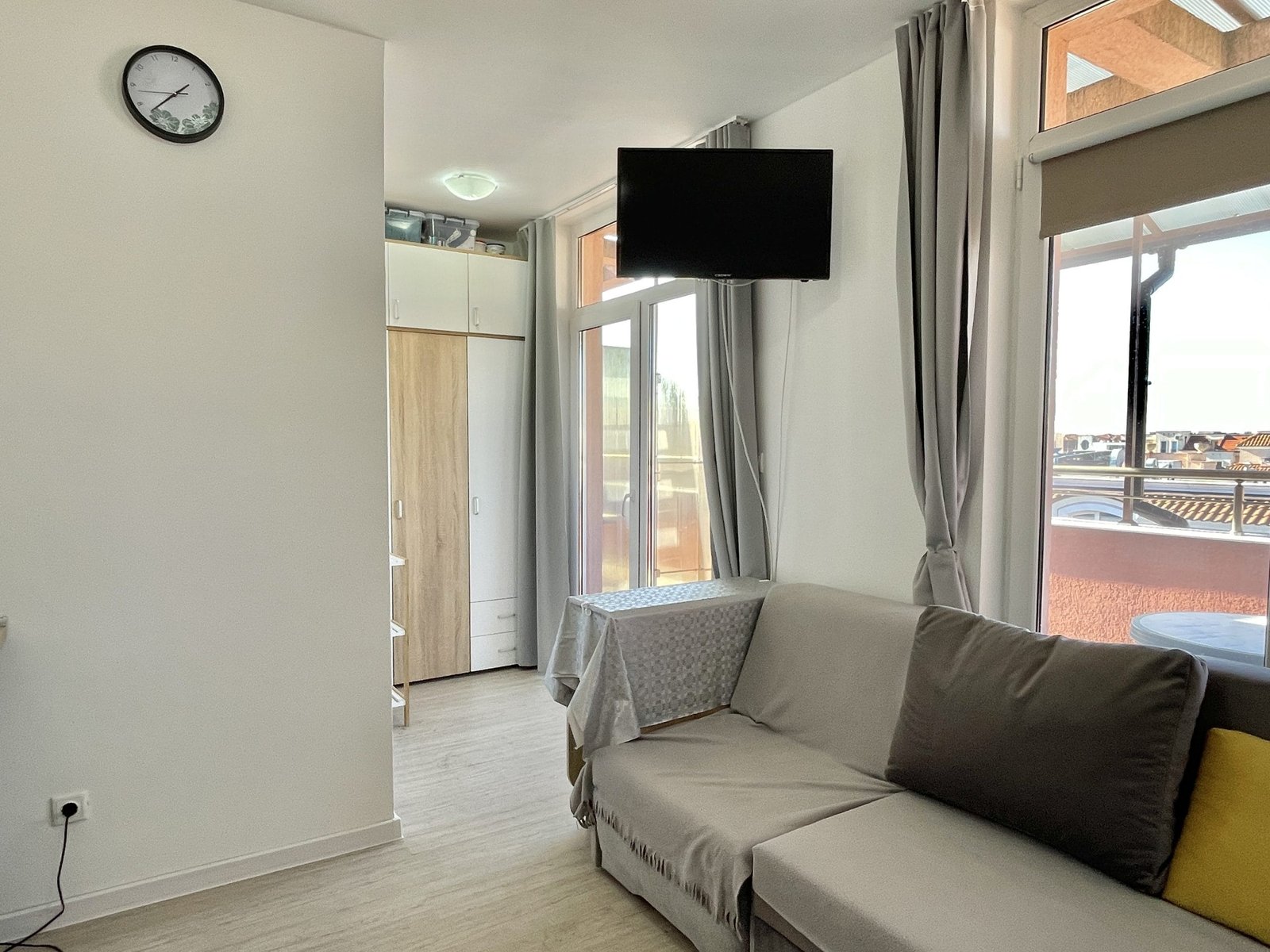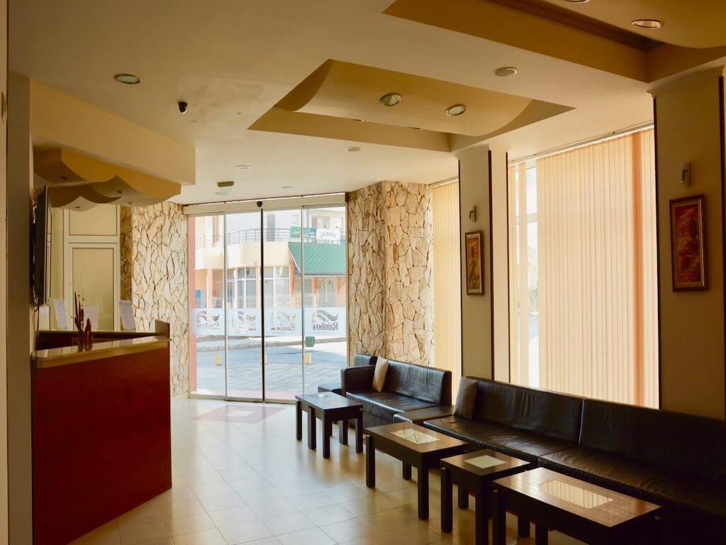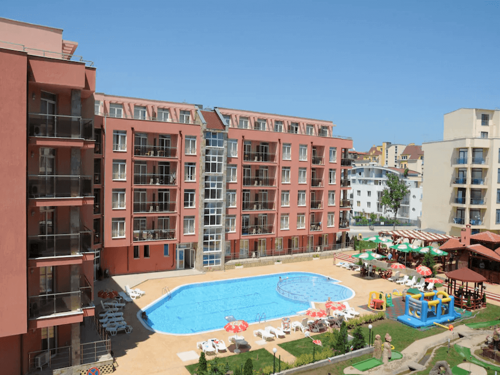 Apartament typu studio o powierzchni całkowitej 35,75 m2 i powierzchni użytkowej 30,55 m2, wykończony i oferowany w pełni umeblowany i po remoncie. Apartament znajduje się na 6. piętrze w kompleksie Rainbow 2 w Słonecznym Brzegu.