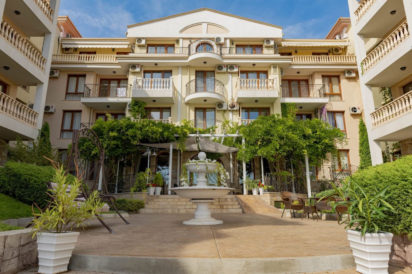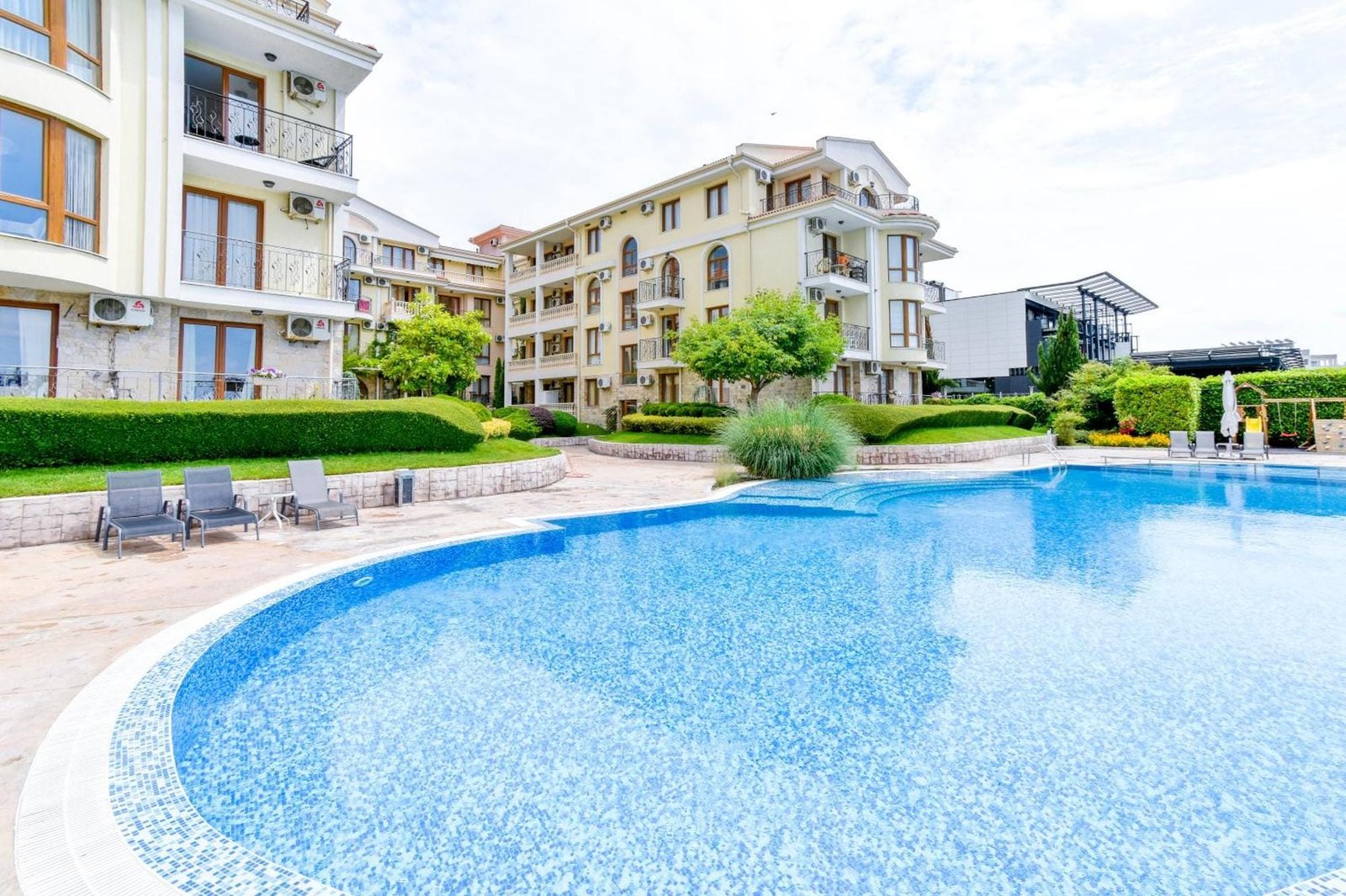 Royal Bay Residence, położony na pierwszej linii brzegowej, oferuje swoim właścicielom i gościom spokojną i przyjemną atmosferę z pięknym widokiem na morze i całą zatokę. Kompleks oferuje parking, recepcję, całodobowy monitoring, windy, odkryty basen.