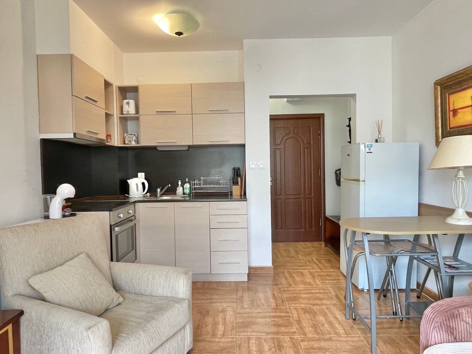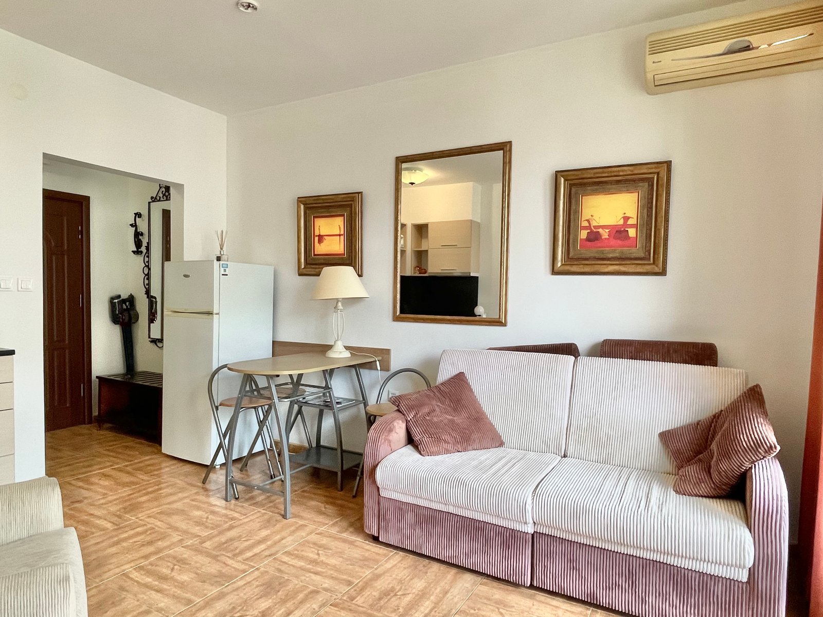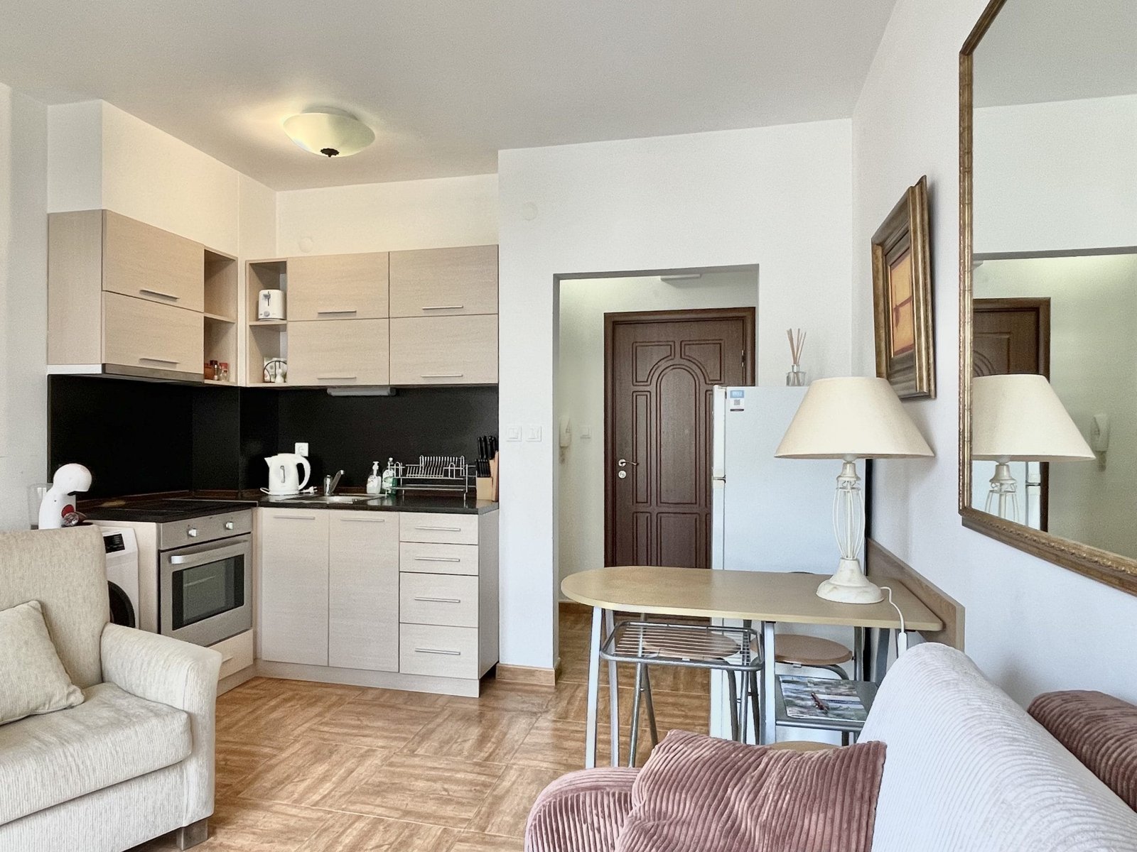 Dwupokojowy apartament o powierzchni całkowitej 55,10 m2 i powierzchni użytkowej 46,53 m2, położony na 3. piętrze w kompleksie Royal Bay Residence w Sveti Vlas. Apartament jest oferowany w stanie wykończonym i w pełni umeblowanym i składa się z salonu z aneksem kuchennym, sypialni, łazienki z toaletą, korytarza/holu wejściowego i balkonu z widokiem na morze.