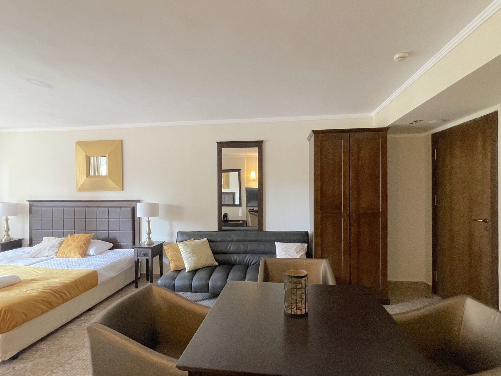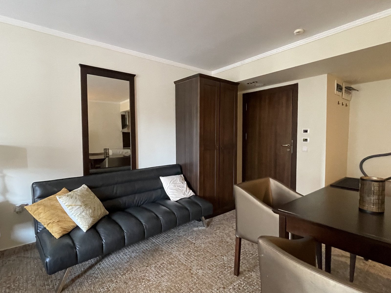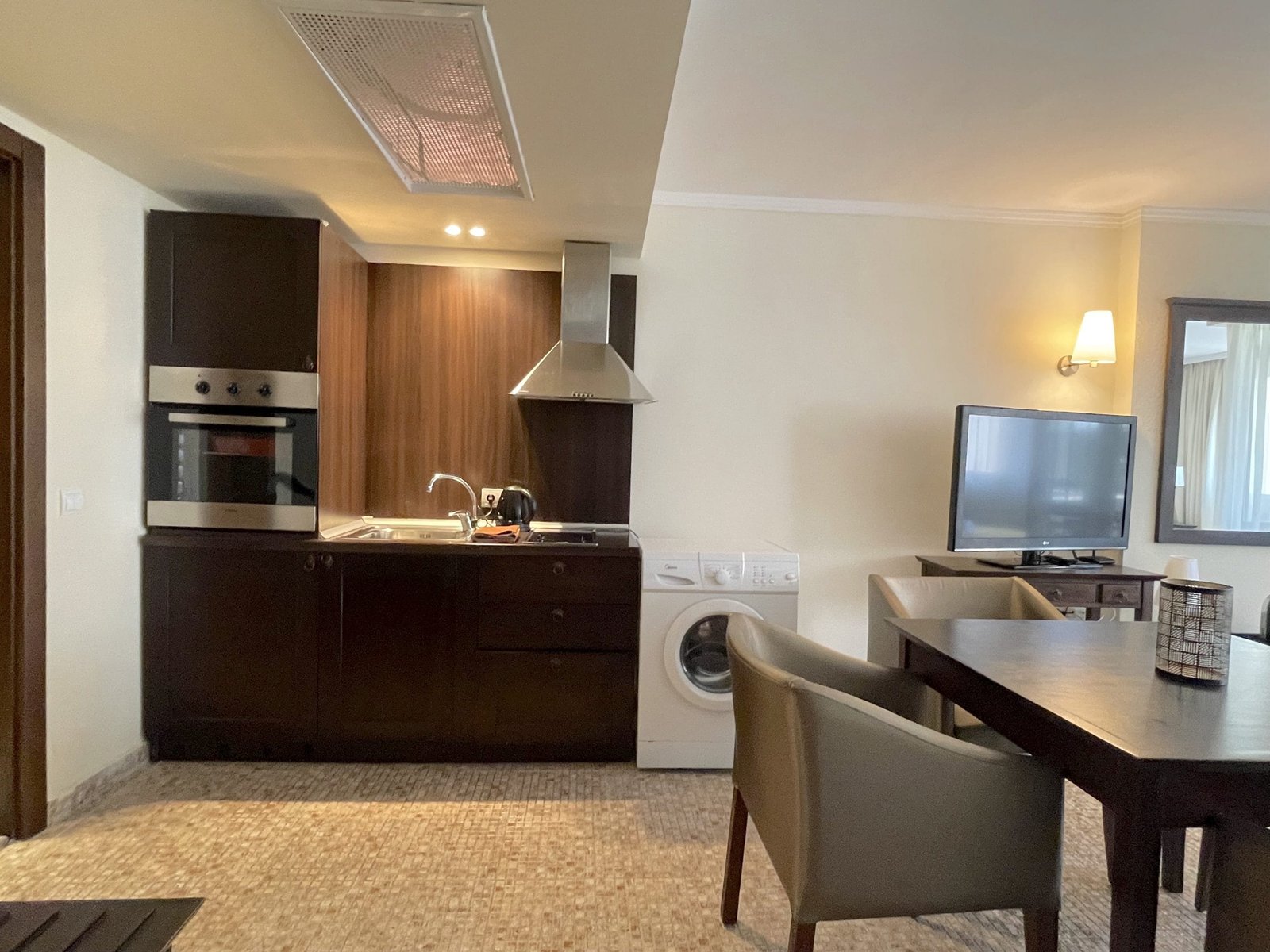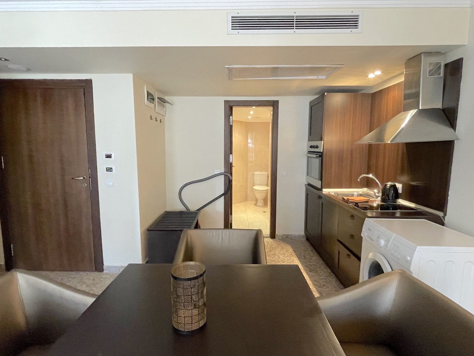 The building also has a large reception with lobby bar, cafe, two restaurants, travel agency, car rental, currency exchange, laundry, wellness center, hair salon, doctor’s offices and a small shopping center.