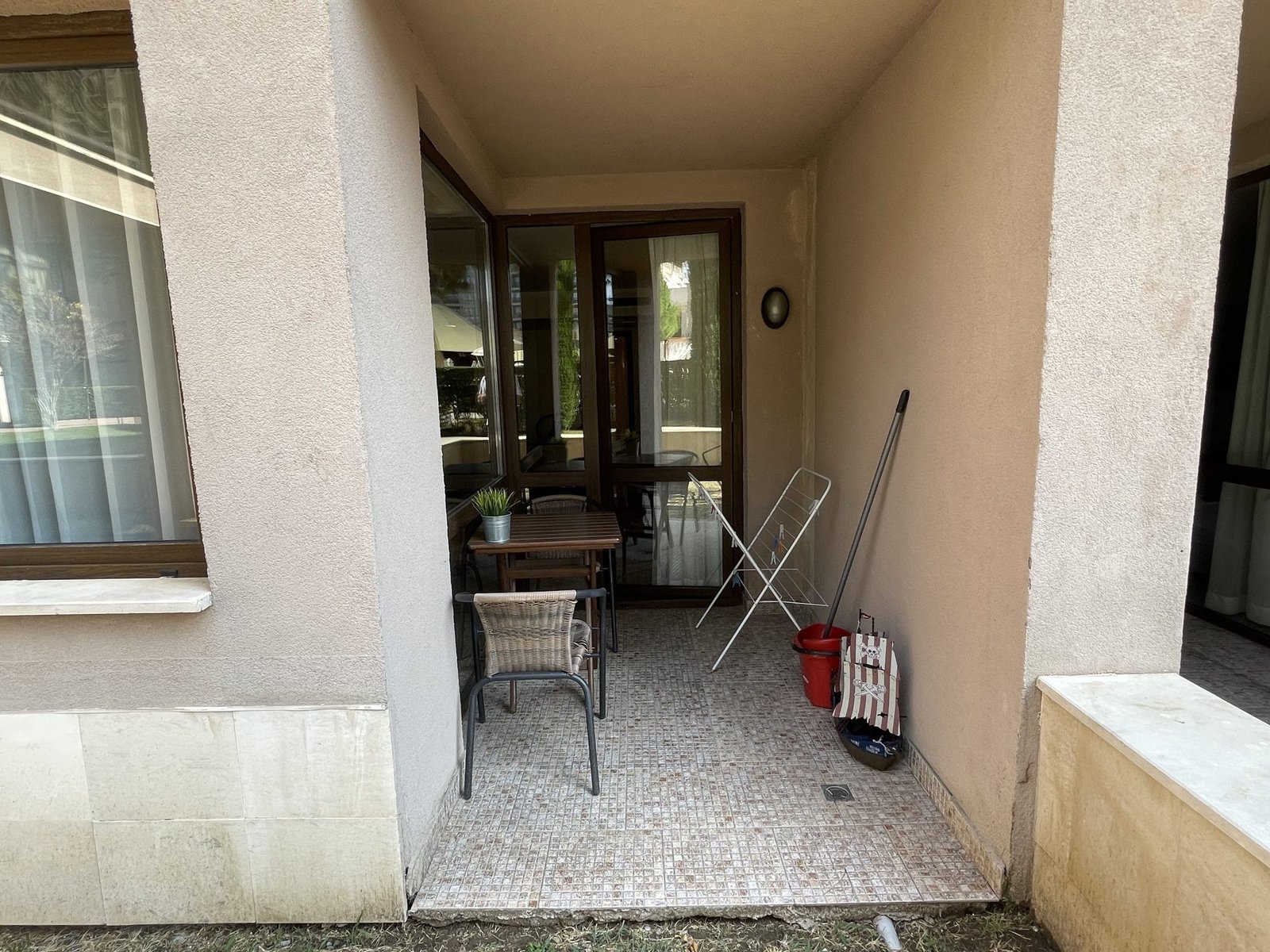Studio with a total size with common parts of 56.31 m2 and a built-up area of 48 m2, finished and offered fully furnished. The apartment is located on the ground floor, only 50 meters from the beach and 200 meters from the center of Sunny Beach.