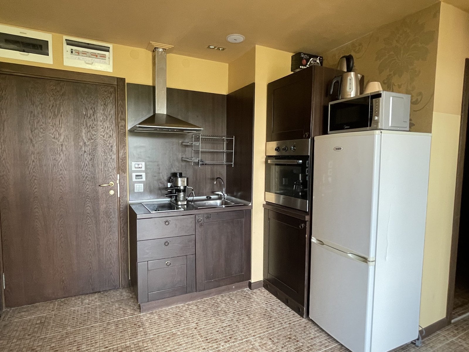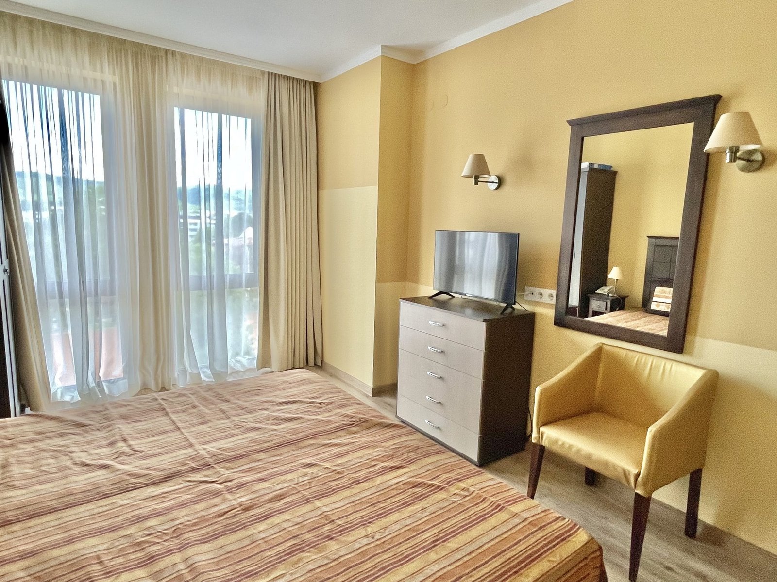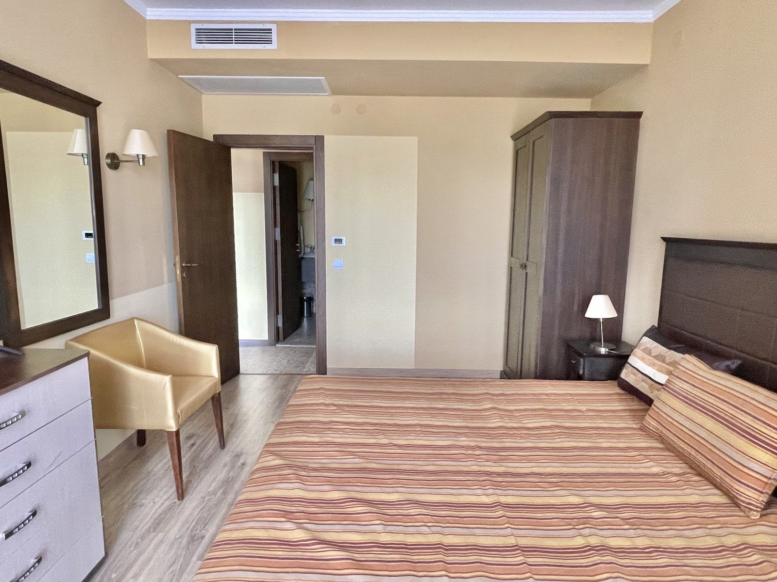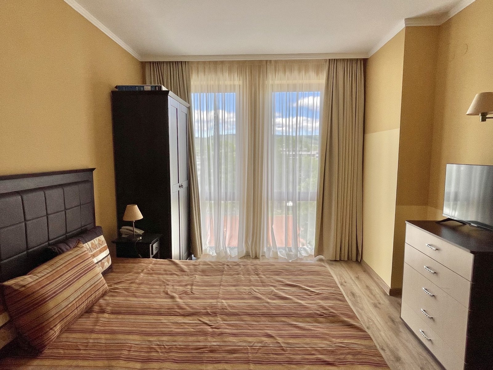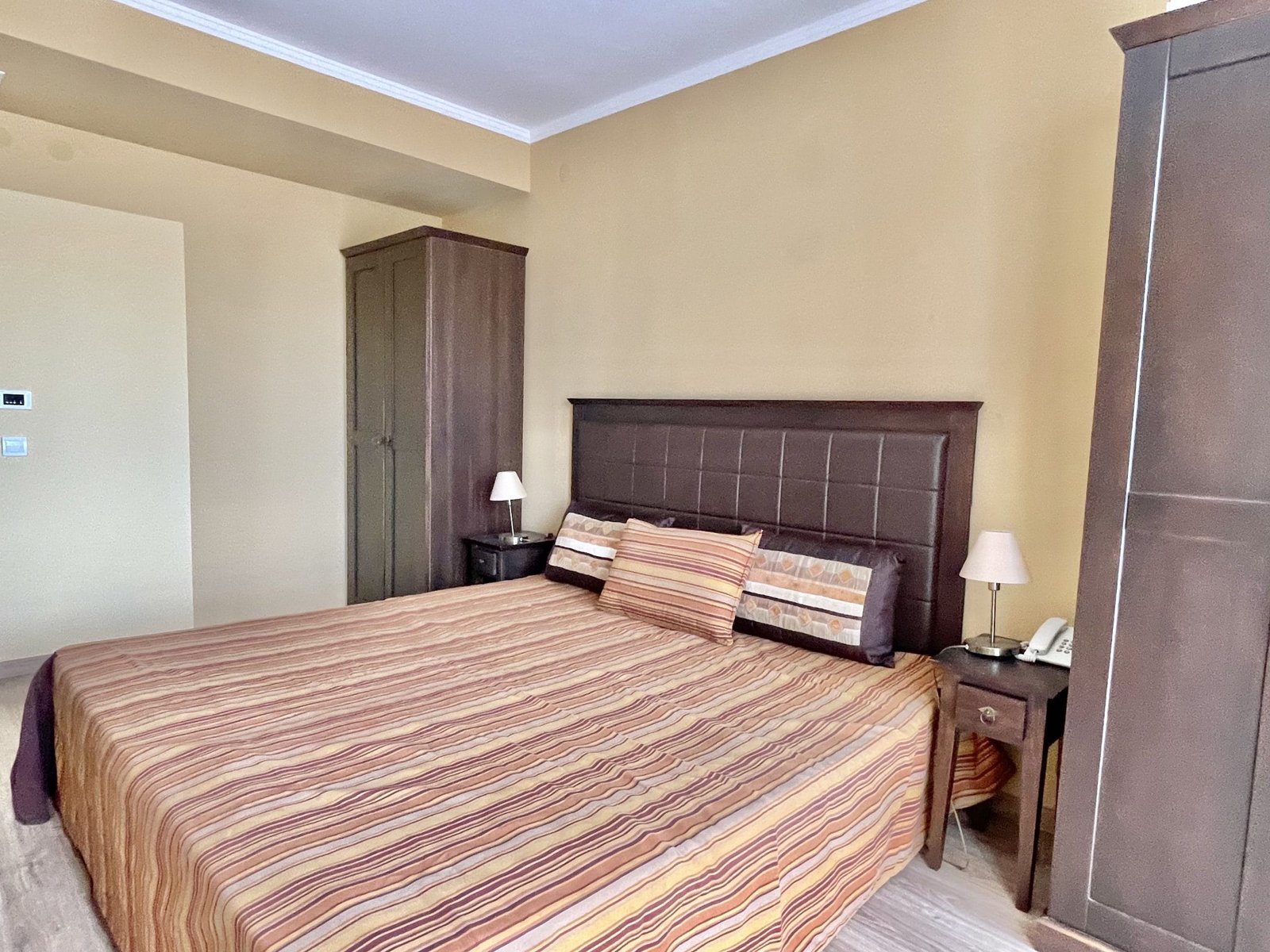 2 pokojowy apartament o powierzchni całkowitej 68.31 m2 i powierzchni użytkowej 57.89 m2, wykończone i oferowane w pełni umeblowane. Mieszkanie znajduje się na 4 piętrze, zaledwie 50 metrów od plaży i 200 metrów od centrum Słonecznego Brzegu.