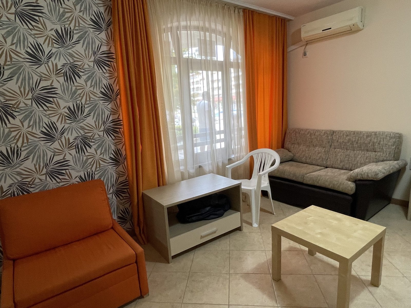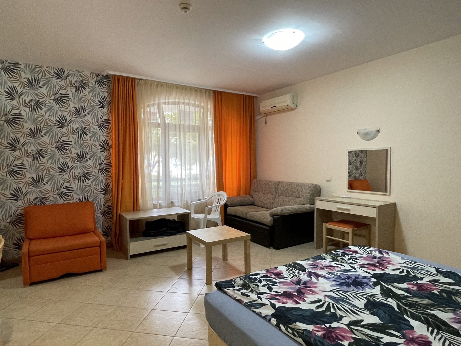 Studio with a total size with common parts of ​​41.82 m2 and a built-up area of ​​35.46 m2, located on the ground floor in the Royal Sun complex in Sunny Beach. The apartment is offered finished and fully furnished.
