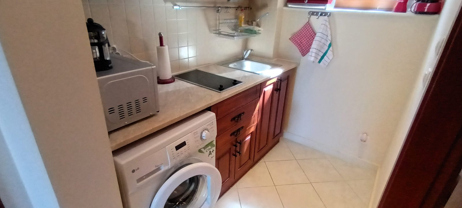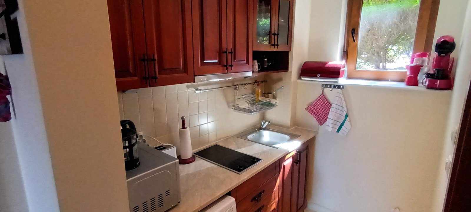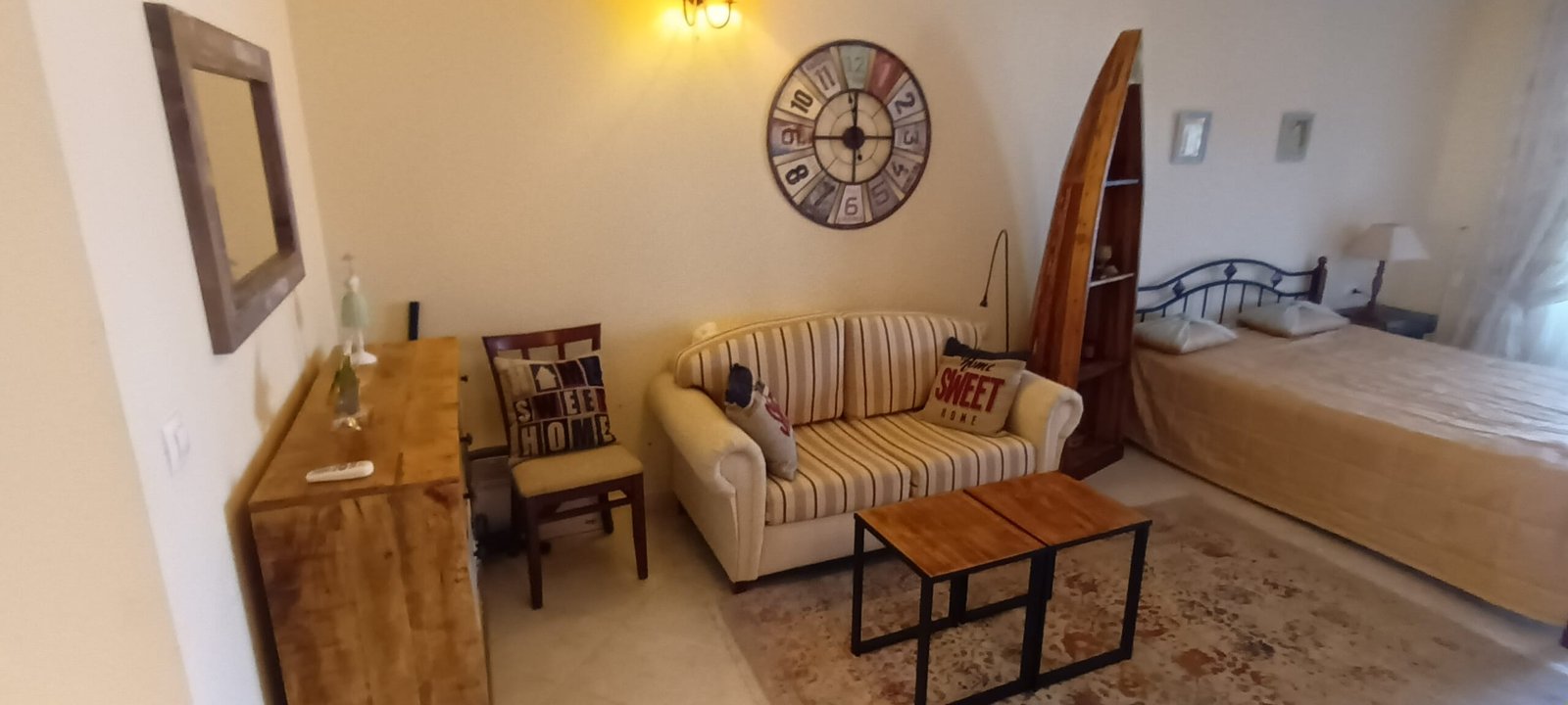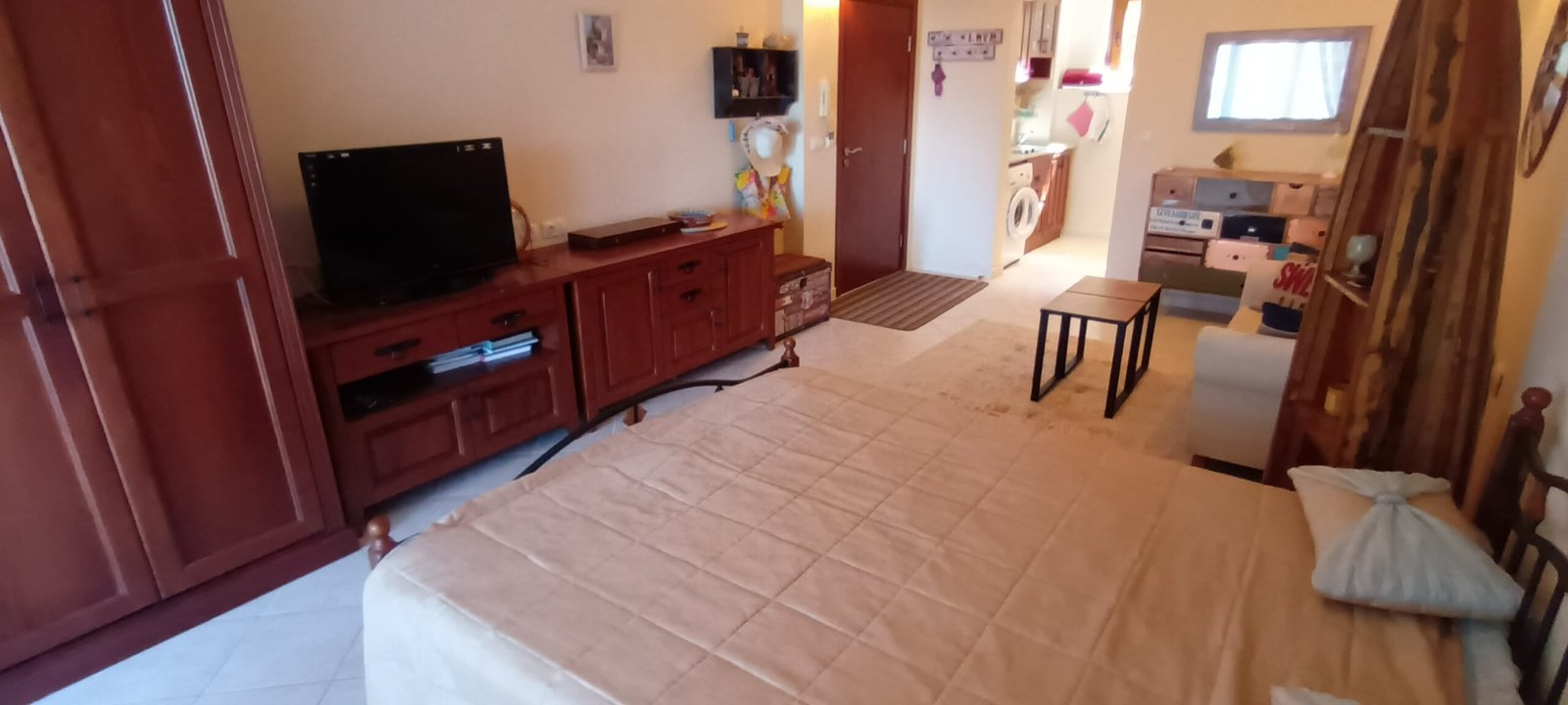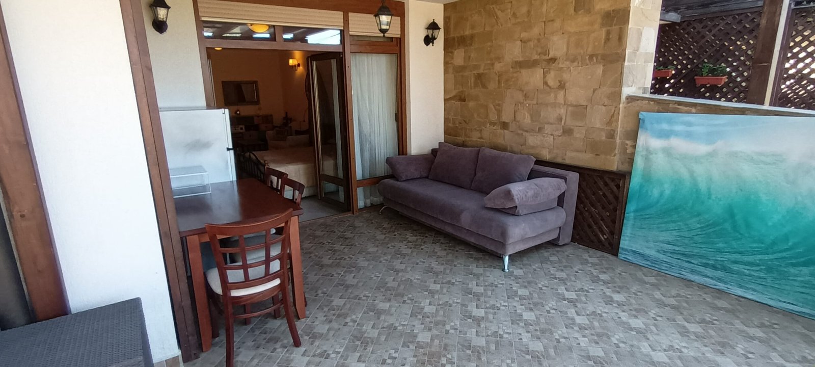 Apartament typu studio o powierzchni całkowitej 67.98 m2, i powierzchni uzytkowej 56.57 m2, wykończone i oferowane w pełni umeblowane. Mieszkanie znajduje sie na 1 piętrze w kompleksie Santa Marina i składa się z dużego salonu z aneksem kuchennym, łazienki oraz dużego tarasu z widokiem na las i cześciowym widokiem na morze.
