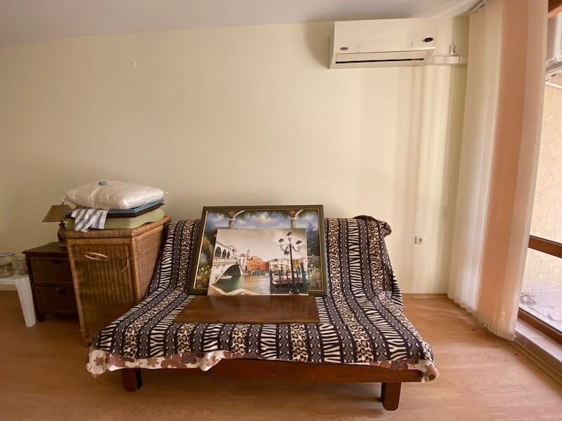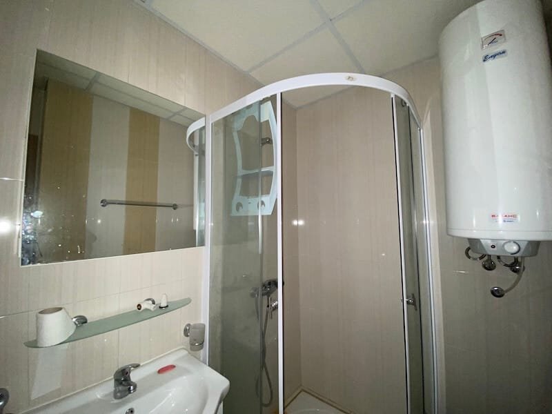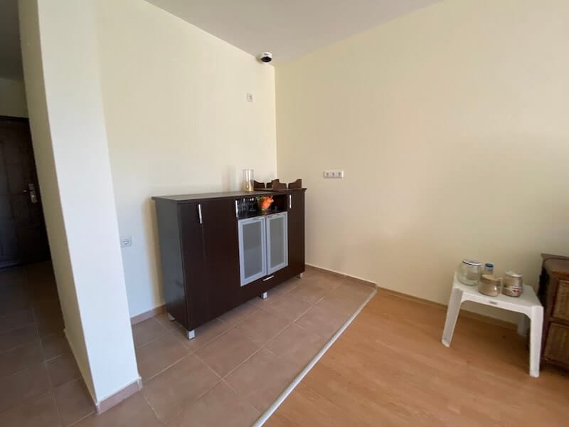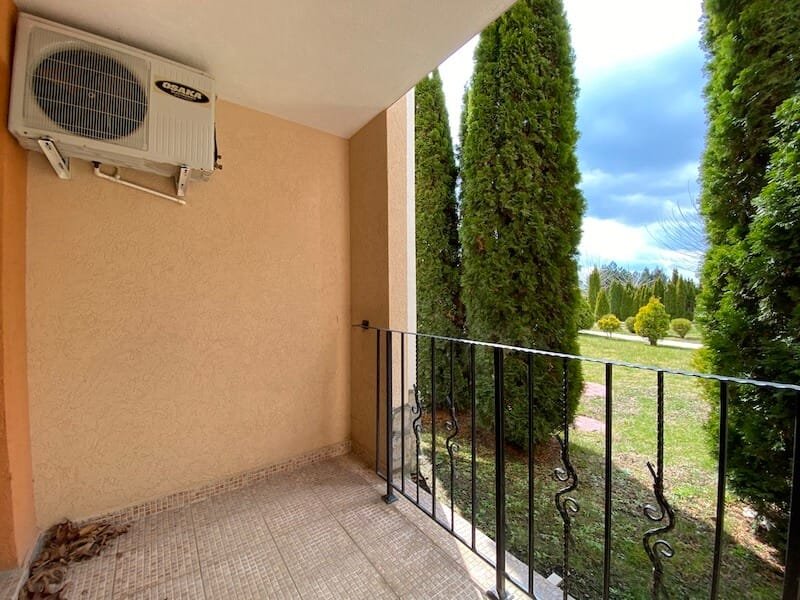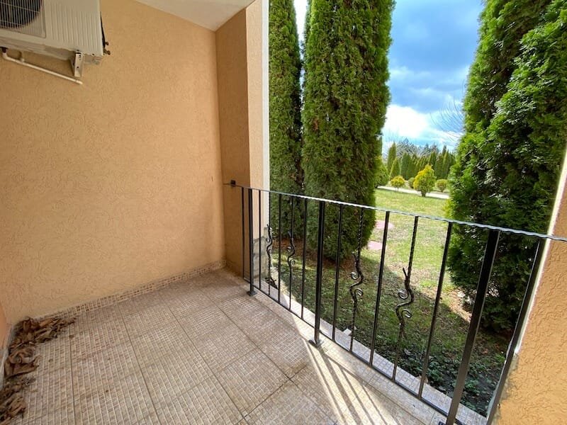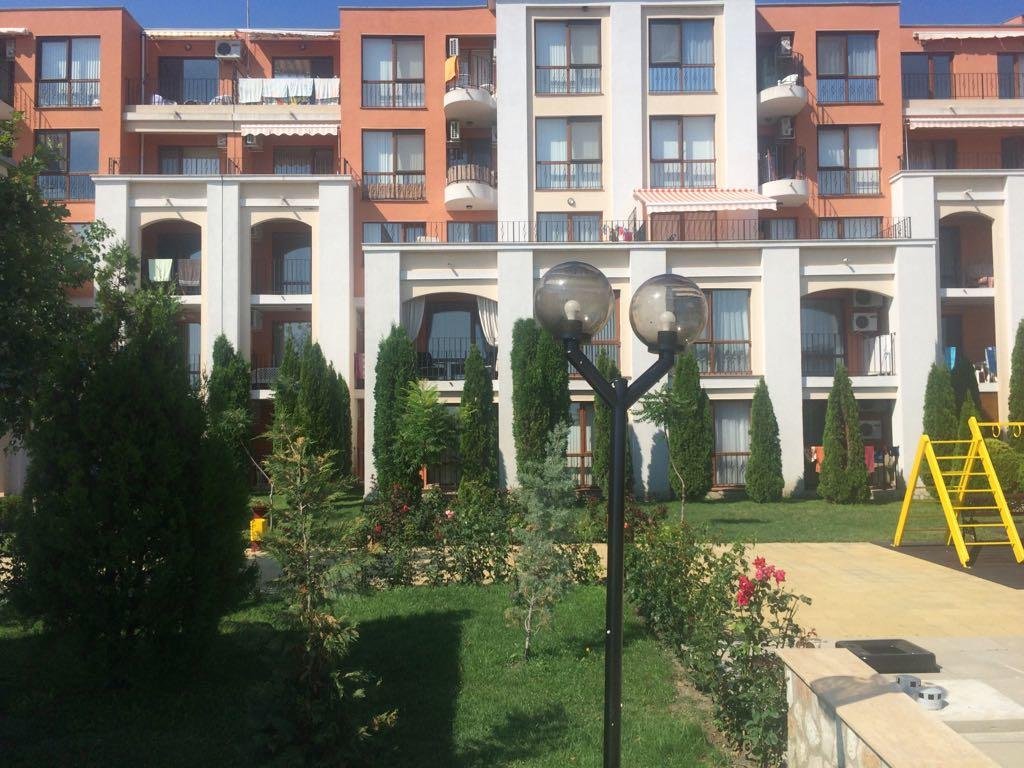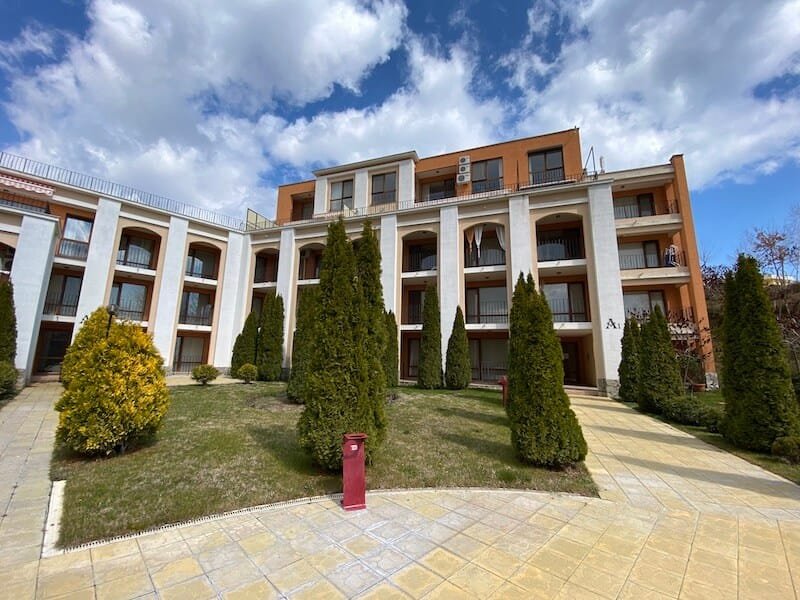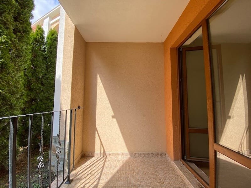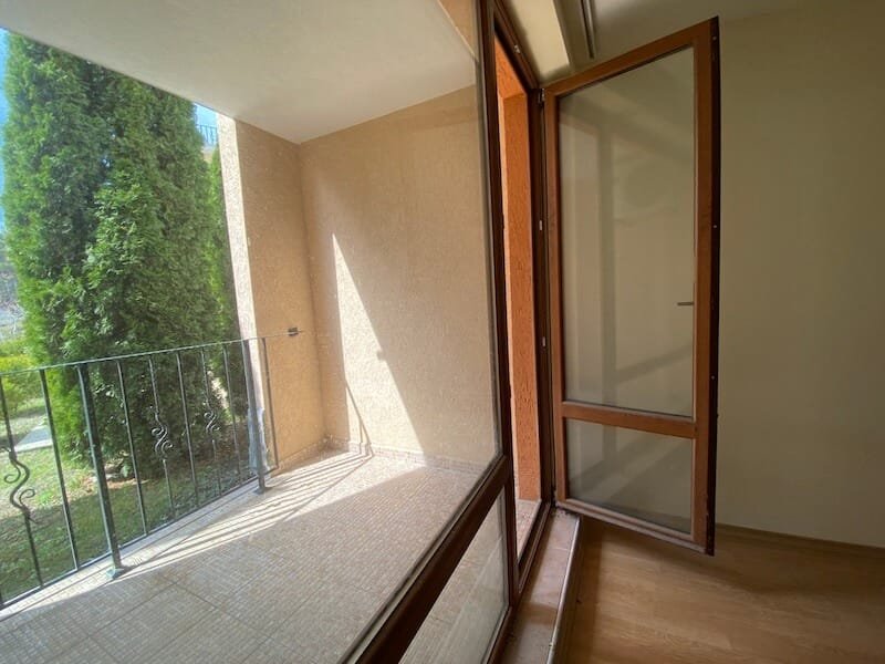 Studio apartment with a total size with common parts of 45.55 m2 and a build up area of 37.30 m2, finished and offered with furniture. The apartment is located on the ground floor, in the all-year-round Sea Fort Club complex in Sveti Vlas. The apartment consists of a hall-corridor, living room with a space for a kitchenette, bathroom with a toilet and a balcony overlooking the garden. The apartment does not have a kitchen, but it has all possible connections.