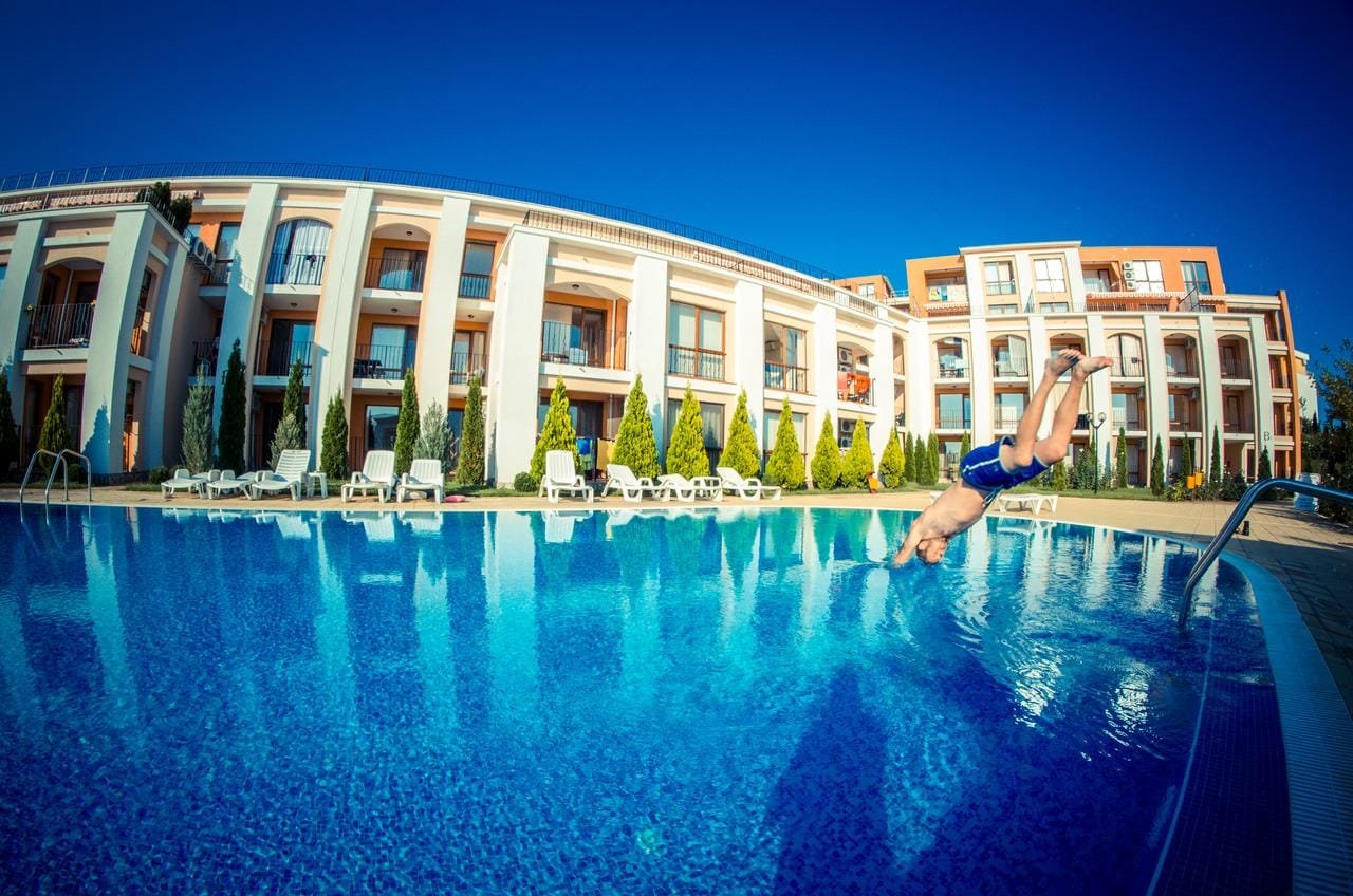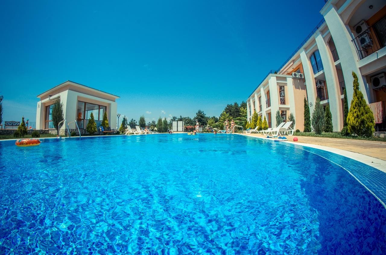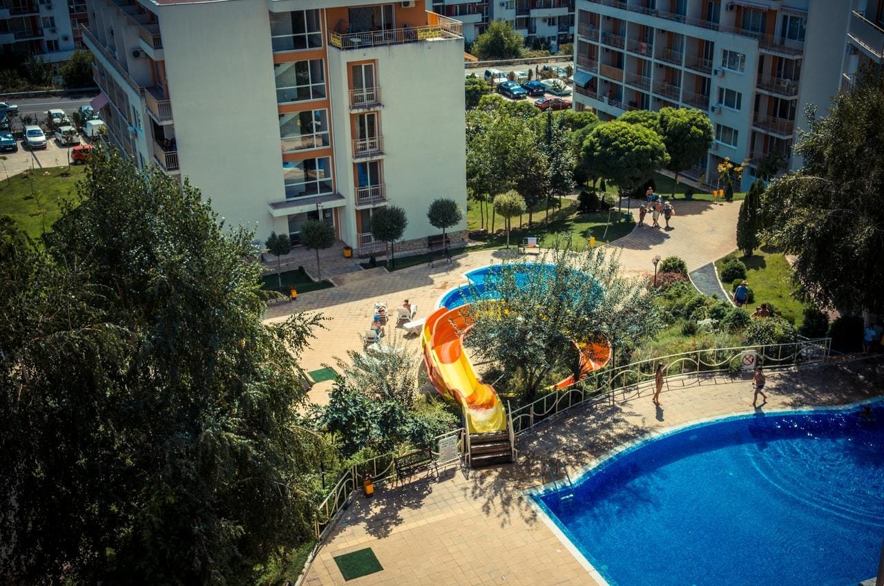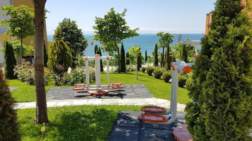 The Sea Fort Club complex in Sveti Vlas is located 250 meters from the beach and a 10-minute drive from Sunny Beach. The facility offers owners and guests 7 outdoor swimming pools, a spa center, gym, tennis courts, a bar, 3 restaurants, a playground for children, parking, and 24-hour security and monitoring.