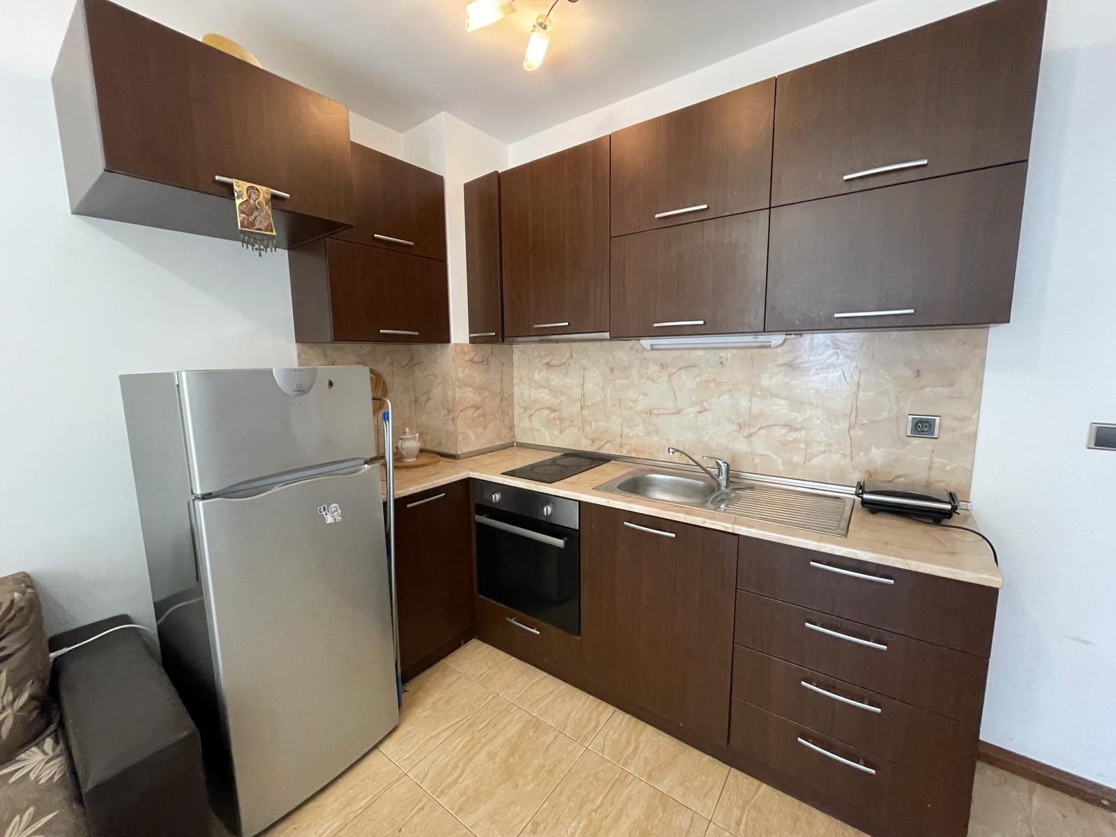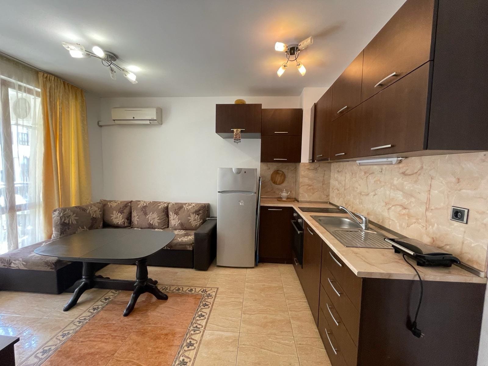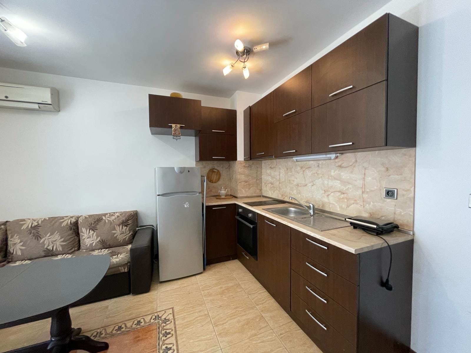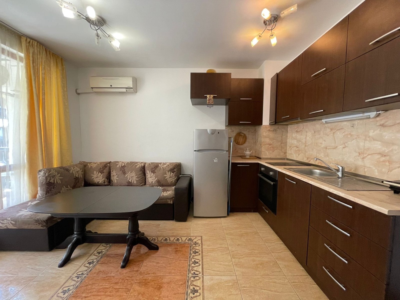 Dwupokojowy apartament o powierzchni całkowitej 45.87 m2 i powierzchni uzytkowej 38.3 m2, wykończony i oferowany z całkowitym umeblowaniem. Mieszkanie położone jest na 1 piętrze w kompleksie Tryavna Beach w Sveti Vlas.