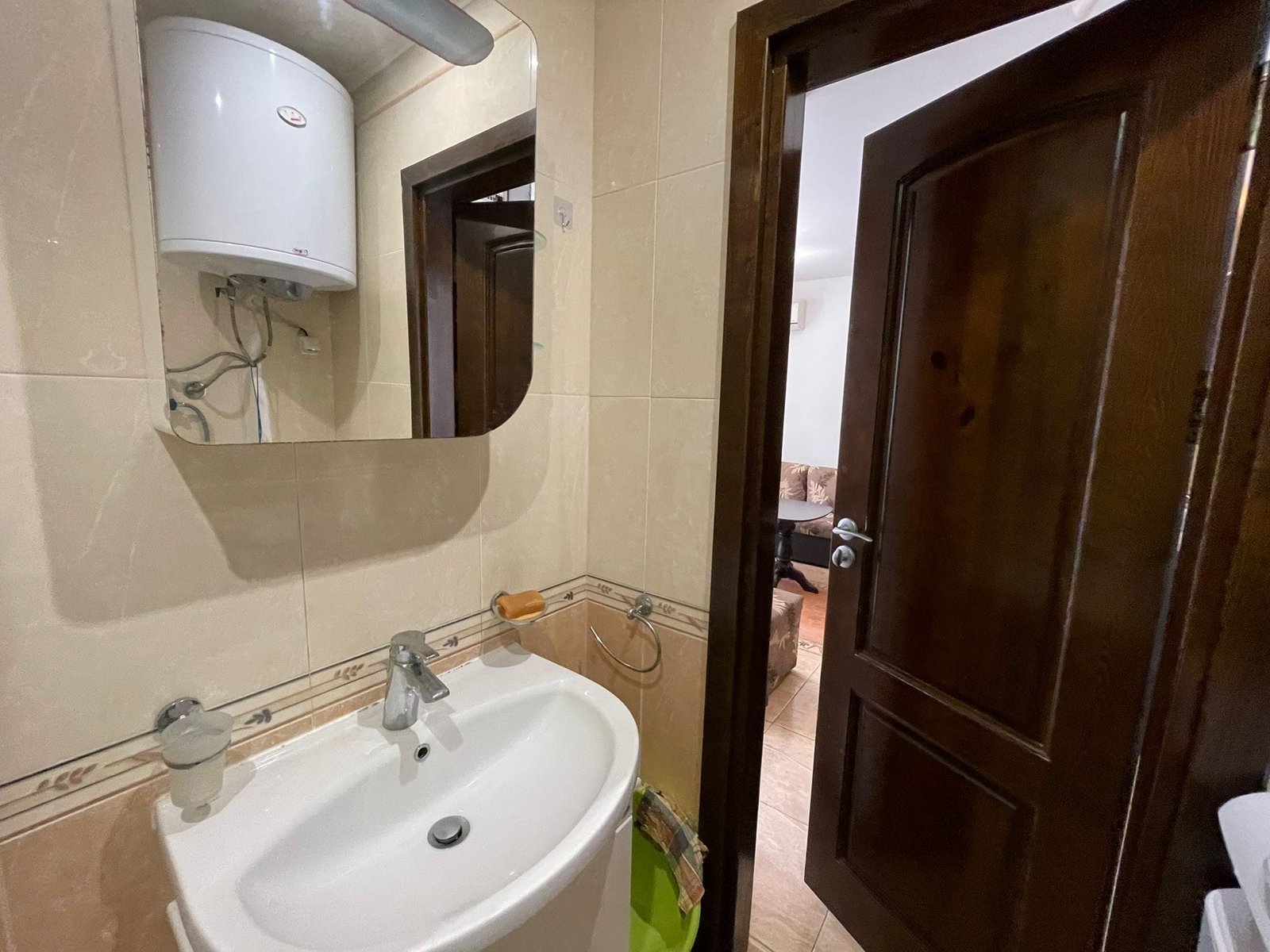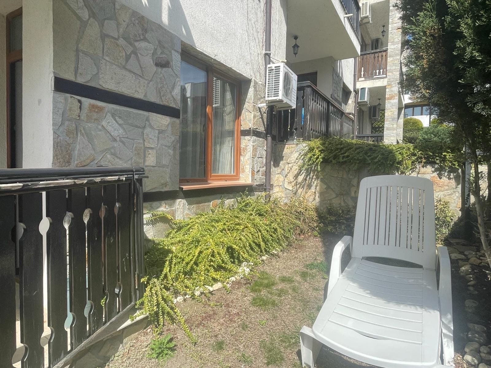 Apartament składa się z salonu z aneksem kuchennym, sypialni, łazienki z WC oraz balkonu z widokiem na morze, oraz małym ogródkiem (około 8-10m2) który nie jest wpisany w powierzchnie mieszkania.
